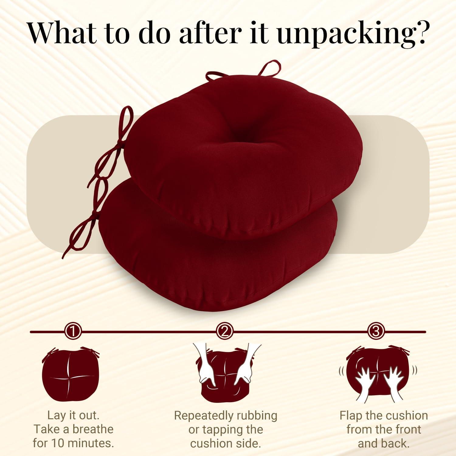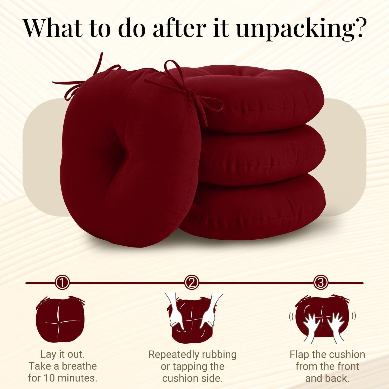 Package Included: Round outdoor cushions are vacuum packed, please confirm the quantity of cushions upon receipt and wait for 48 hours to restore fluffy after unpacking