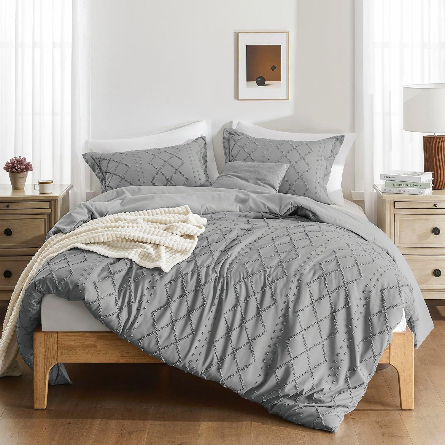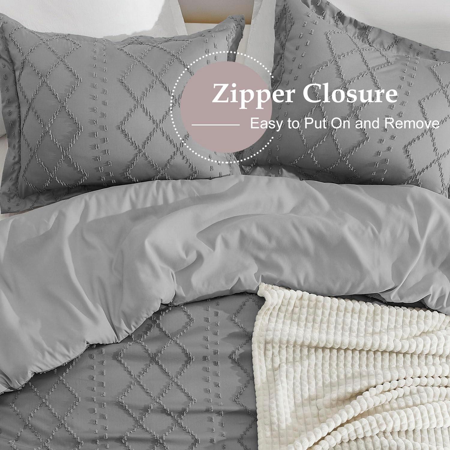 downluxe Boho Twin Duvet Cover – Embroidery Shabby Chic Duvet Cover Twin Set for All Seasons, 2 Pieces Tufted Boho Bedding, Comforter Cover with Zipper (Grey 02, Twin, 68″ x 90″)(Grey 01)