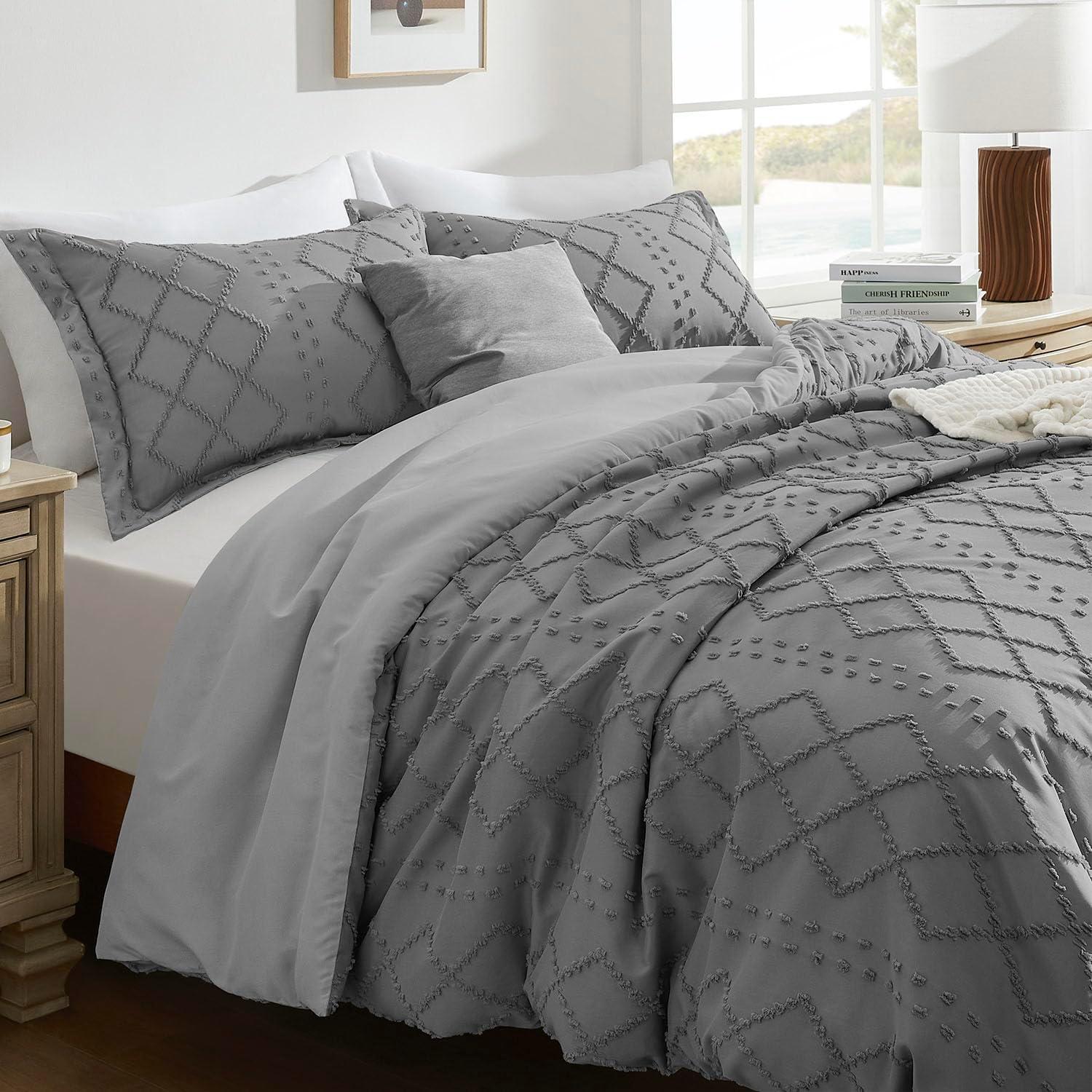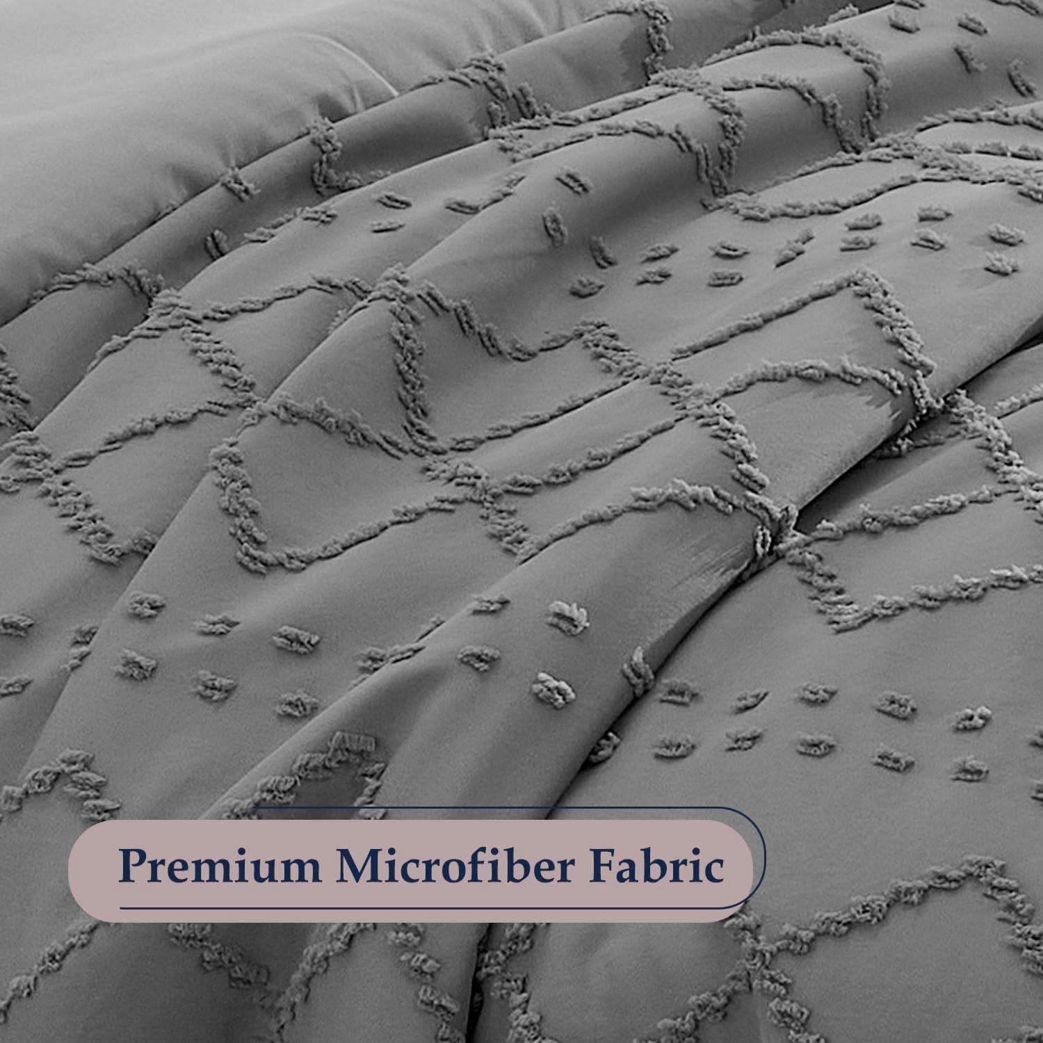 imagedownluxe Boho Twin Duvet Cover  Embroidery Shabby Chic Duvet Cover Twin Set for All Seasons 2 Pieces Tufted Boho Bedding Comforter Cover with Zipper Grey 02 Twin 68quot x 90quotGrey 02