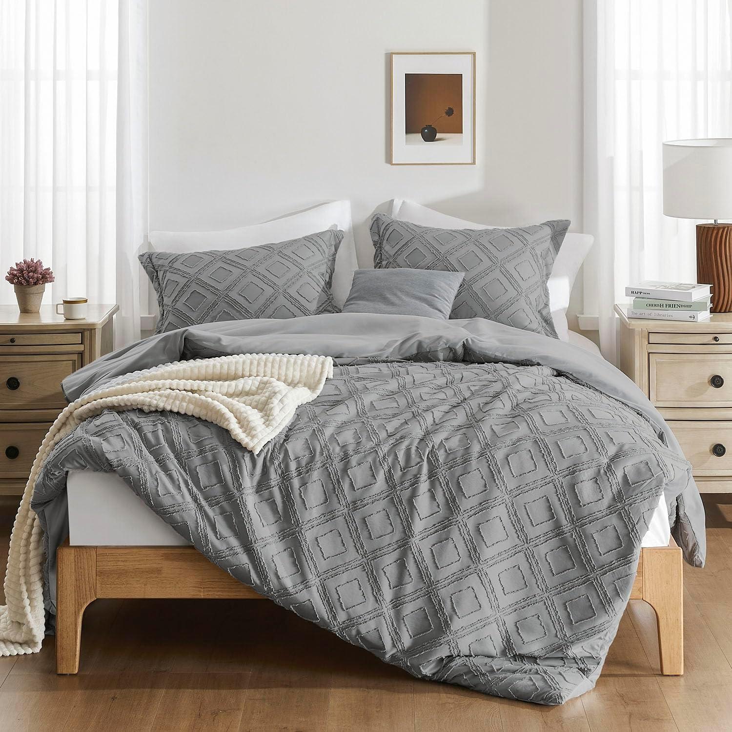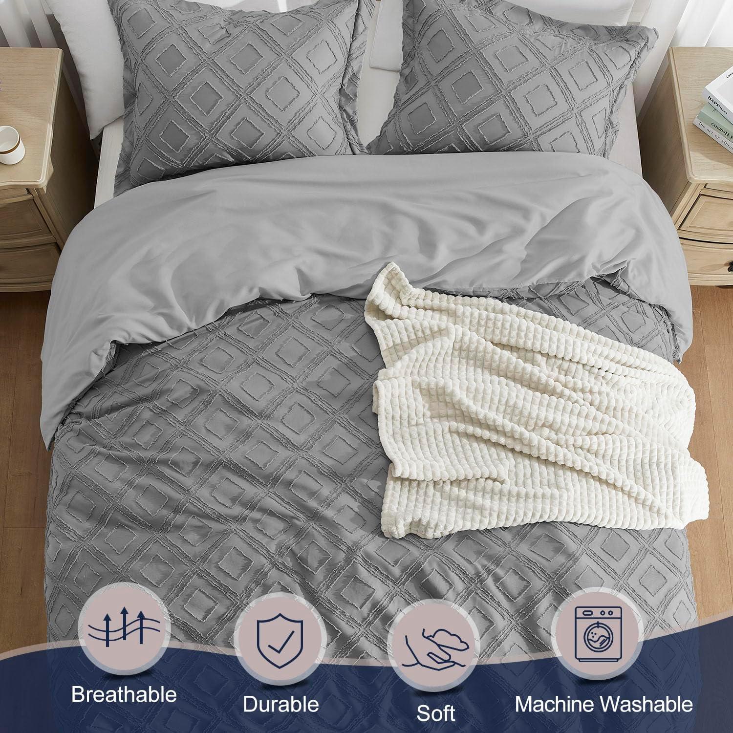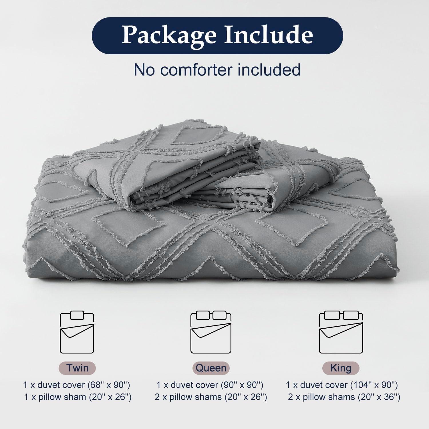 downluxe Boho Twin Duvet Cover – Embroidery Shabby Chic Duvet Cover Twin Set for All Seasons, 2 Pieces Tufted Boho Bedding, Comforter Cover with Zipper (Grey 02, Twin, 68″ x 90″)(Grey 03)