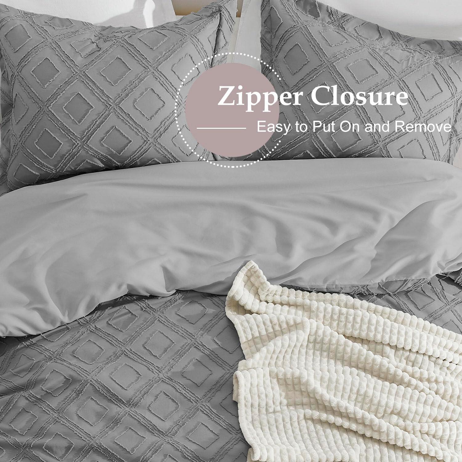 imagedownluxe Boho Twin Duvet Cover  Embroidery Shabby Chic Duvet Cover Twin Set for All Seasons 2 Pieces Tufted Boho Bedding Comforter Cover with Zipper Grey 02 Twin 68quot x 90quotGrey 03