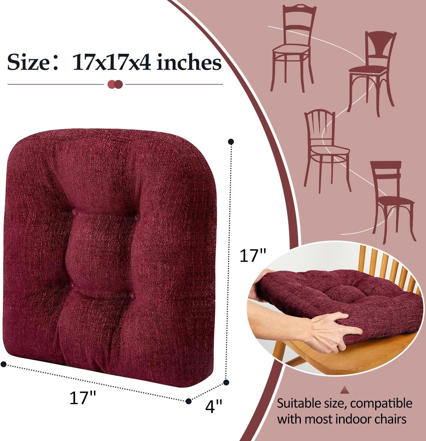 downluxe Chair Cushions for Dining Chairs 4 Pack, Tufted Indoor Chair Pads with Non-Slip Bottom, U-Shaped Kitchen Chair Cushions, 17″x17″x4″, Khaki(Burgundy)