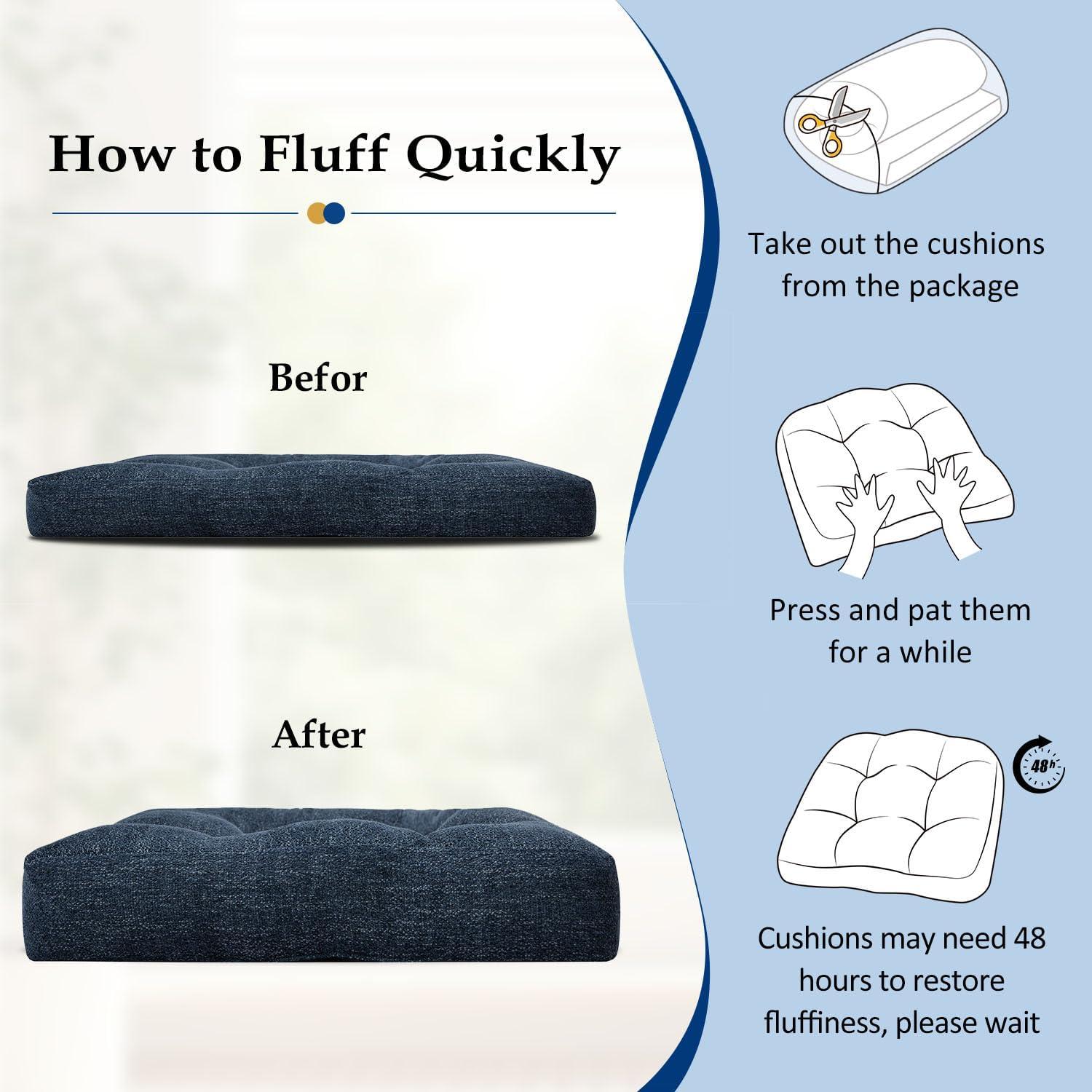 SUPPORTIVE HIGH-DENSITY FOAM: The kitchen chair cushions are filled with 80% foam and 20% polyester for support and comfort. After unpacking, gently tap and press the chair pads, it will be fluffy after waiting for 24-48h