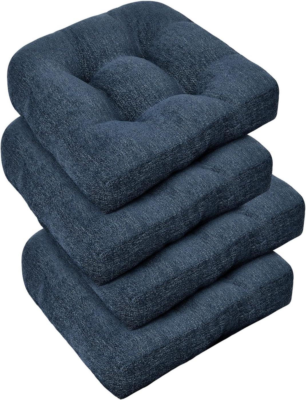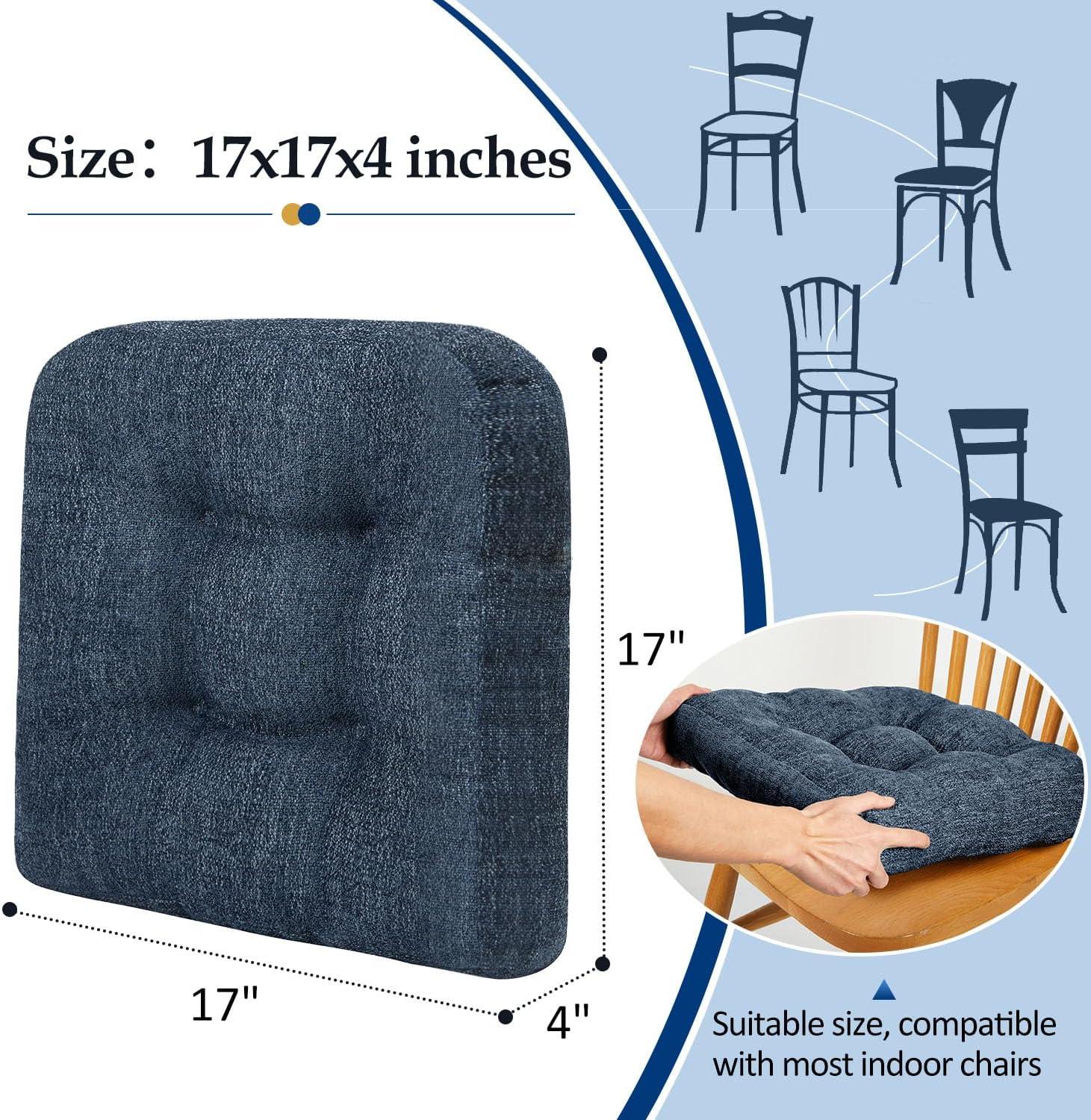 downluxe Chair Cushions for Dining Chairs 4 Pack, Tufted Indoor Chair Pads with Non-Slip Bottom, U-Shaped Kitchen Chair Cushions, 17″x17″x4″, Khaki(Navy)