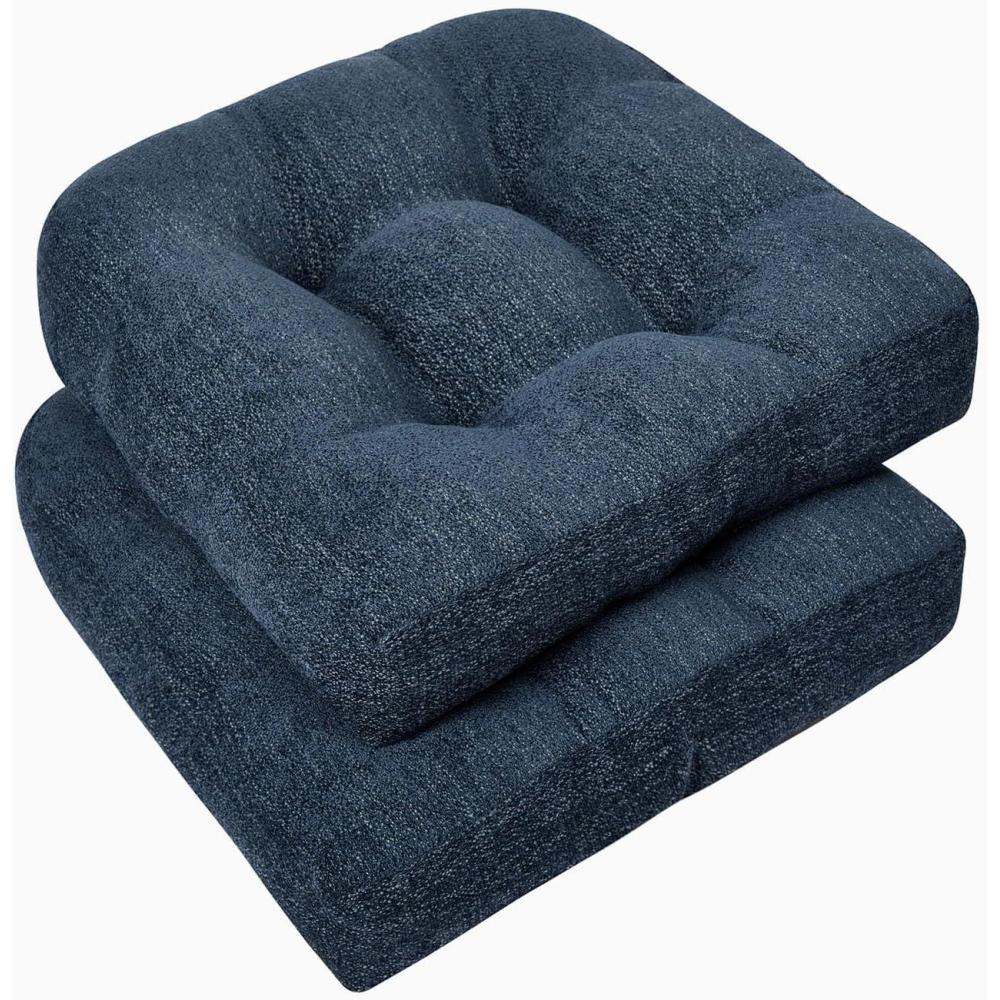 imagedownluxe Chair Cushions for Dining Chairs 4 Pack Tufted Indoor Chair Pads with NonSlip Bottom UShaped Kitchen Chair Cushions 17quotx17quotx4quot KhakiNavy