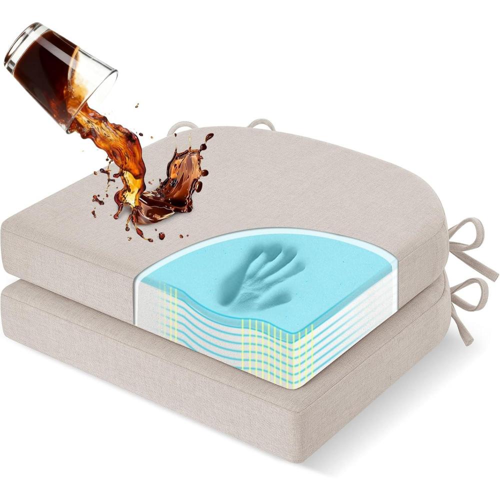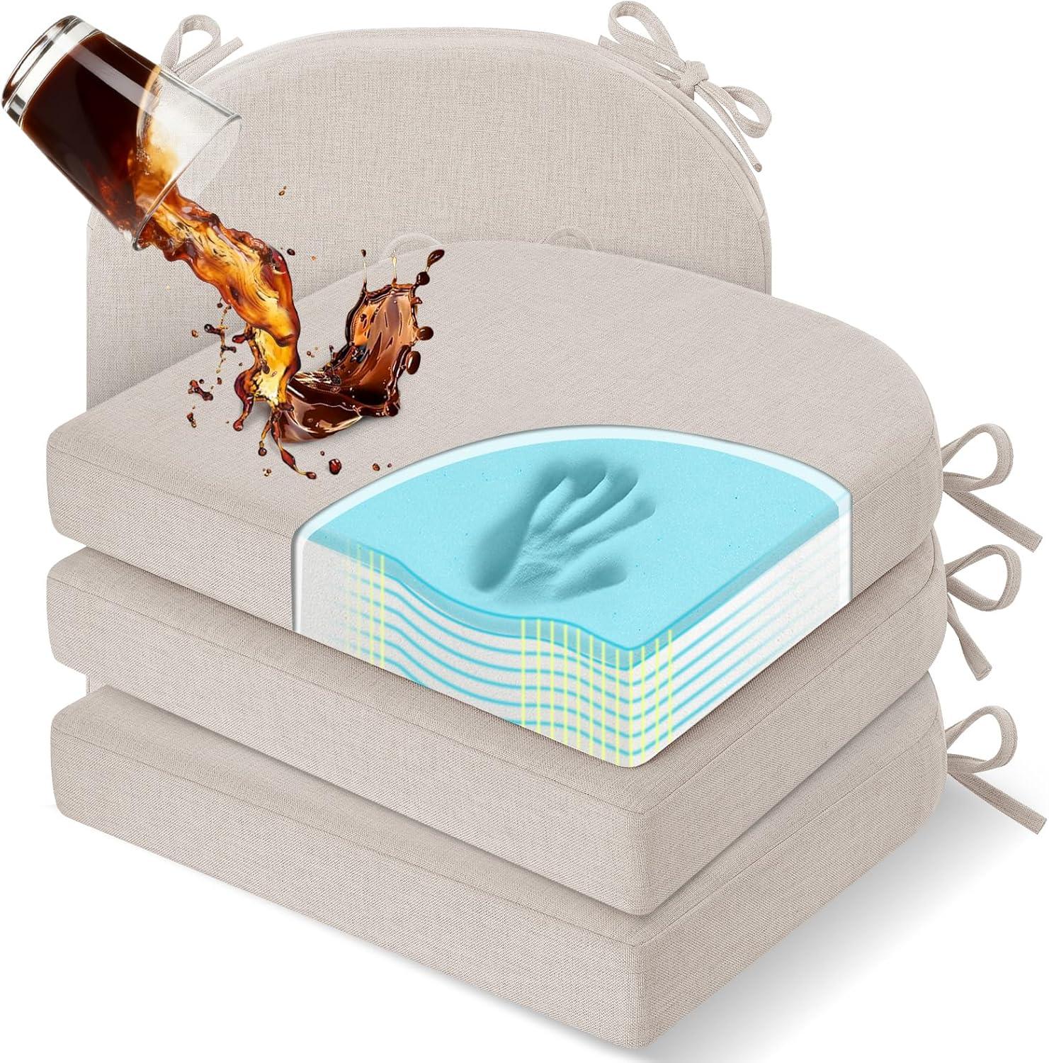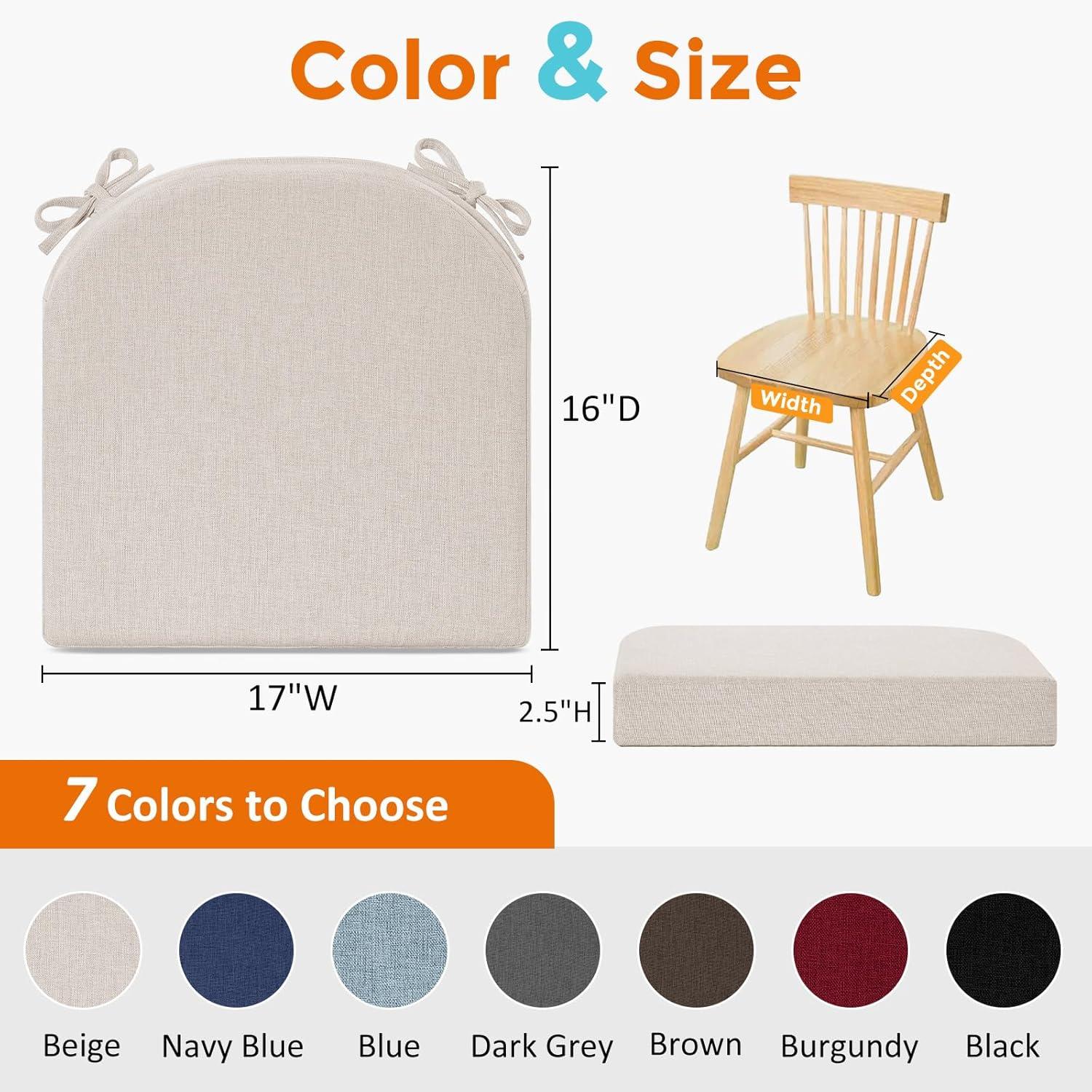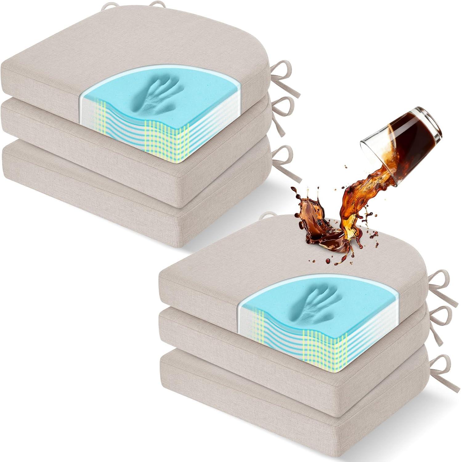 downluxe Chair Cushions for Dining Chairs, Memory Foam Kitchen Chair Pads with Ties, Waterproof, Stain-Resistant and Washable Cover, 17" x 16" x 2.5", Black, 6 Pack(Beige)