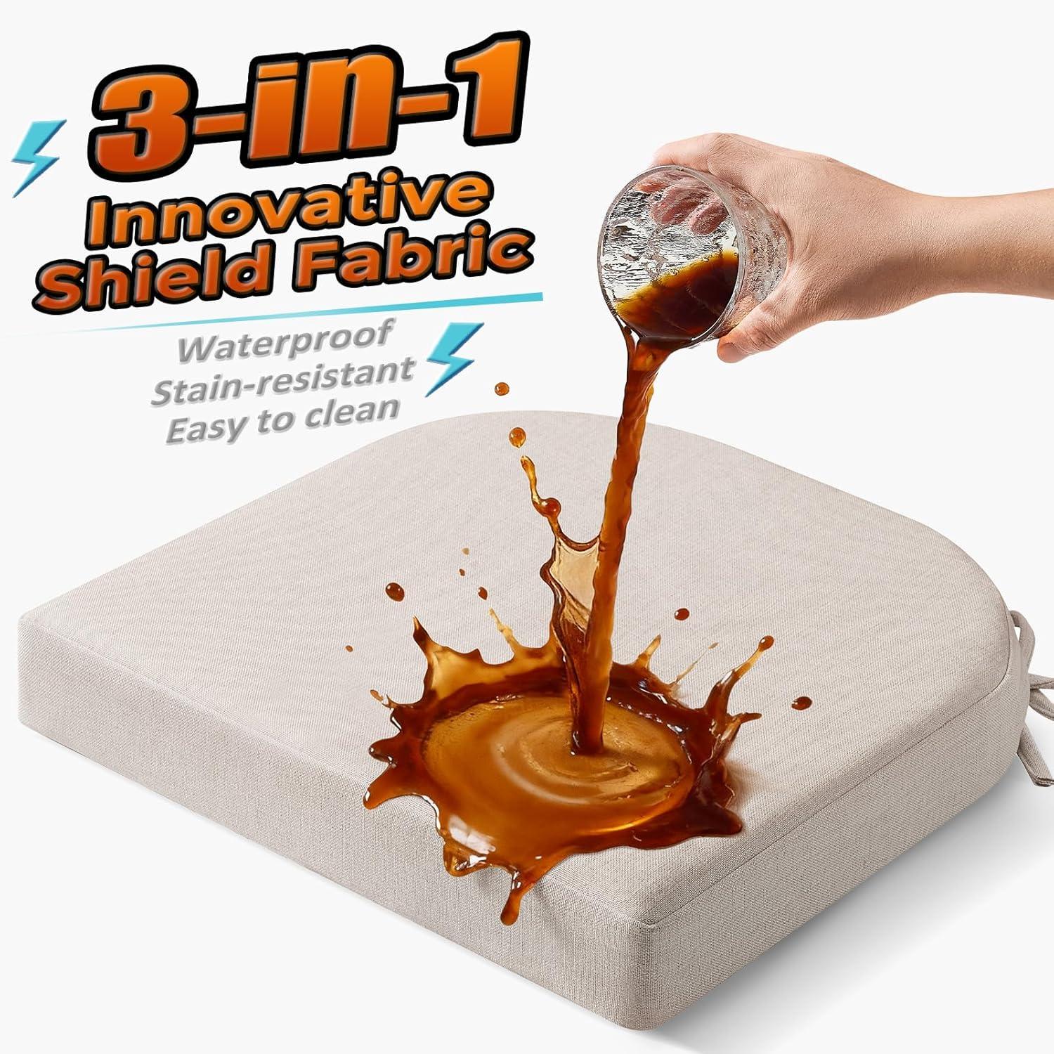 Innovative 3-in-1 Shield Fabric: Our dining chair cushions are crafted with a technical fabric that resists water, dust and stains. From morning coffee and kids' meal-time messes to evening wine, daily spills bead up and can be wiped away in seconds