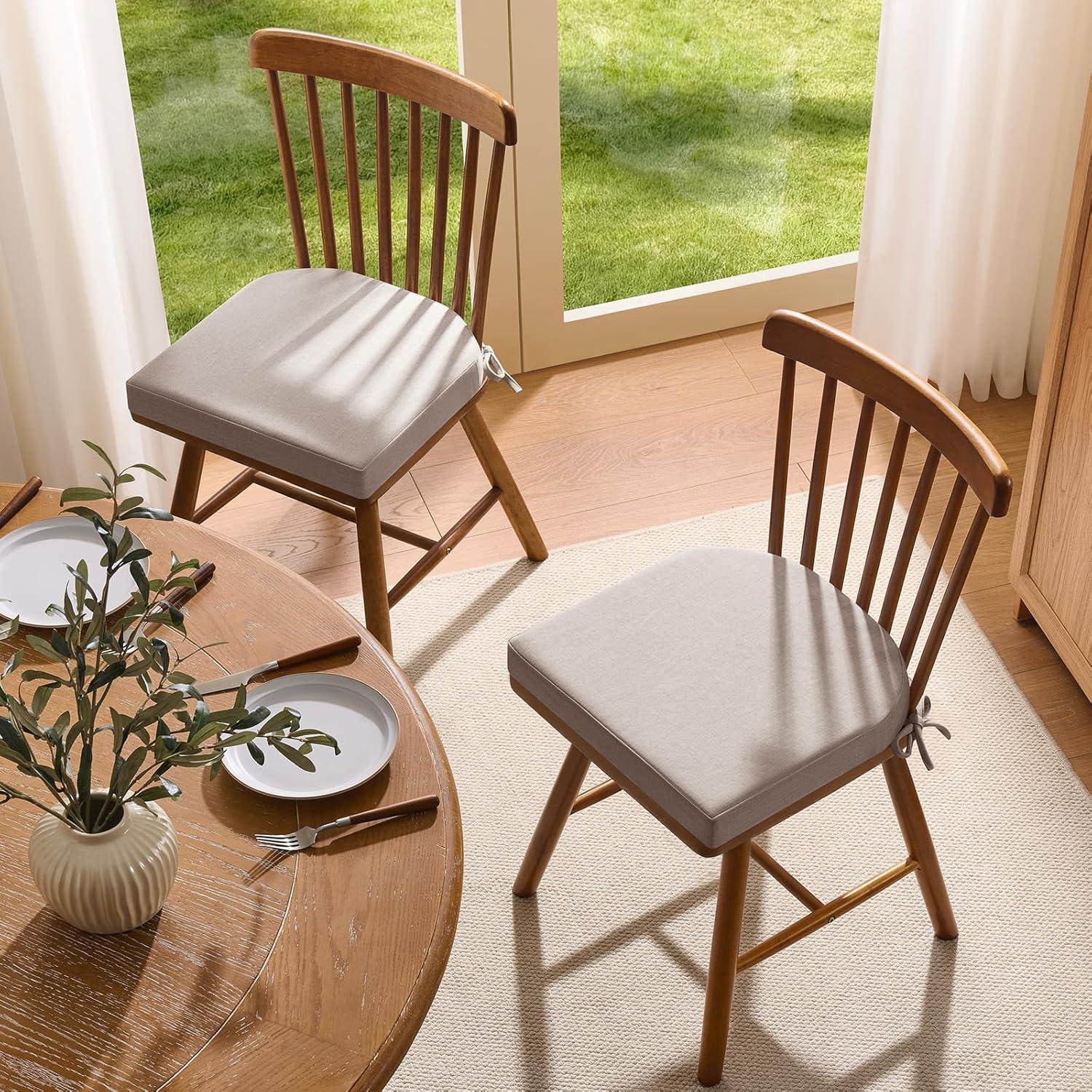 downluxe Chair Cushions for Dining Chairs, Memory Foam Kitchen Chair Pads with Ties, Waterproof, Stain-Resistant and Washable Cover, 17″ x 16″ x 2.5″, Black, 6 Pack(Beige)