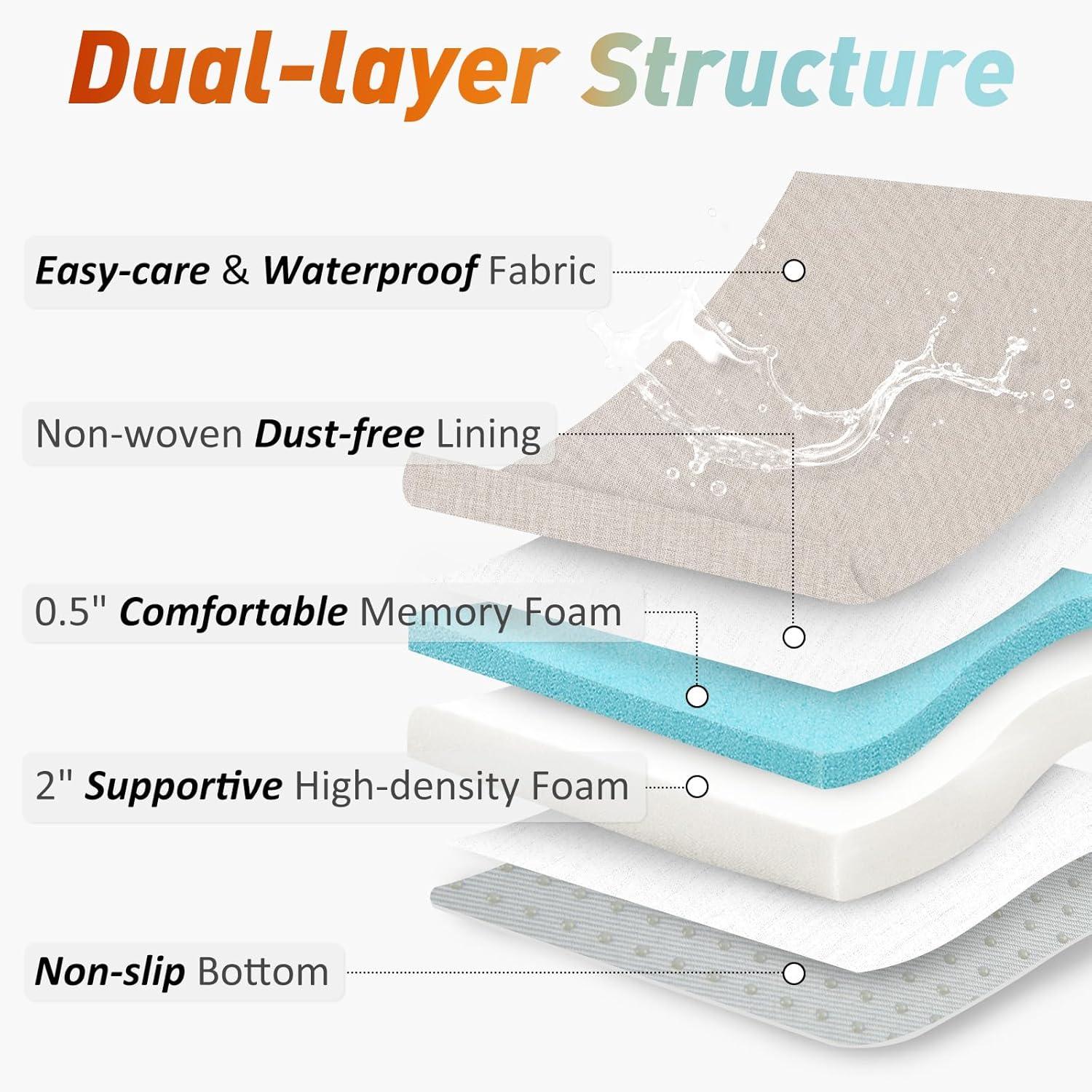 Double Layer Foam: The downluxe chair cushion molds to your shape with 0.5″ of memory foam over a 2″ high-density foam base. It's made to ease pressure and keep you comfortably supported through long, laughter-filled dinners or quiet moments of relaxation