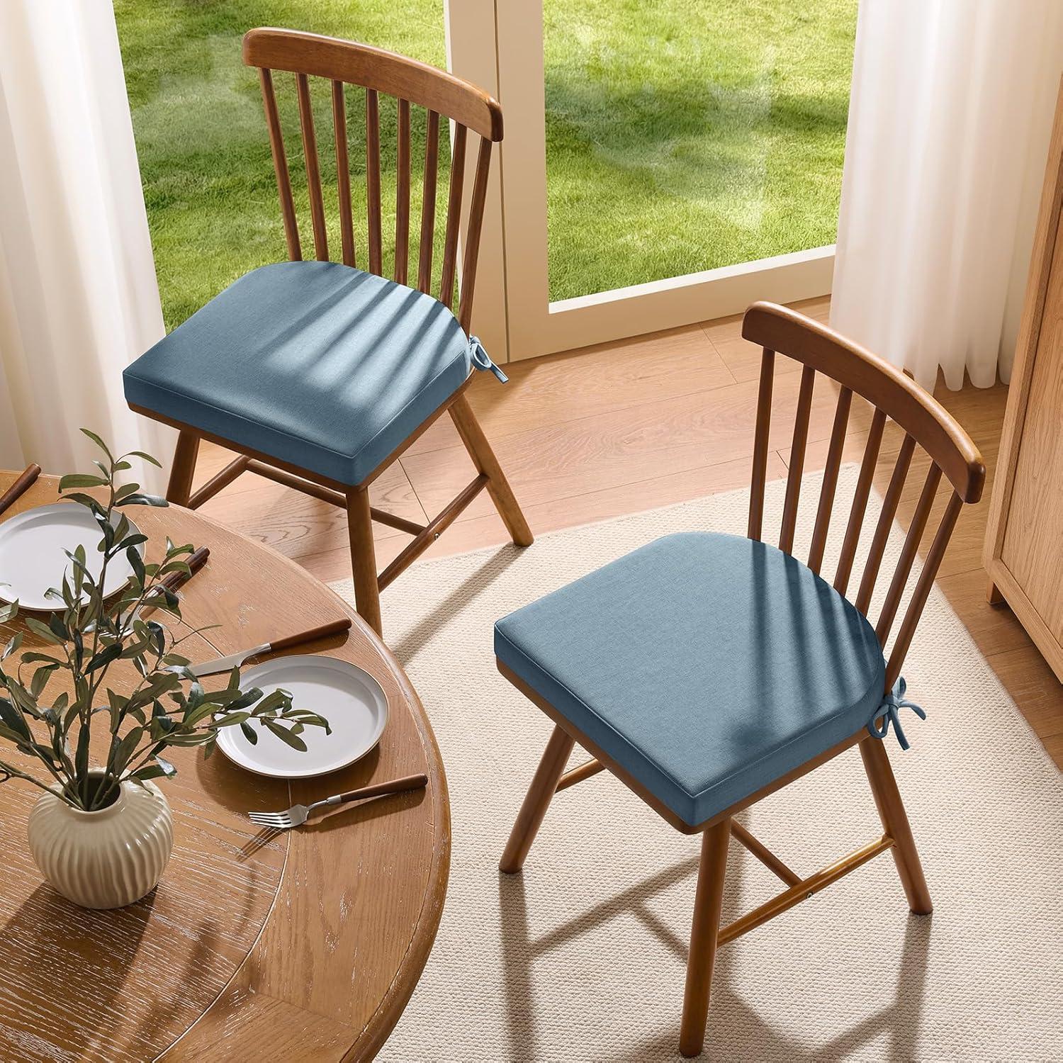 downluxe Chair Cushions for Dining Chairs, Memory Foam Kitchen Chair Pads with Ties, Waterproof, Stain-Resistant and Washable Cover, 17″ x 16″ x 2.5″, Black, 6 Pack(Blue)