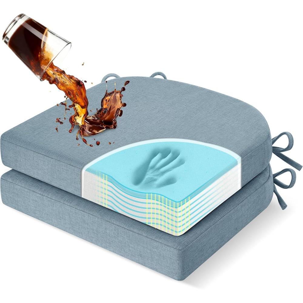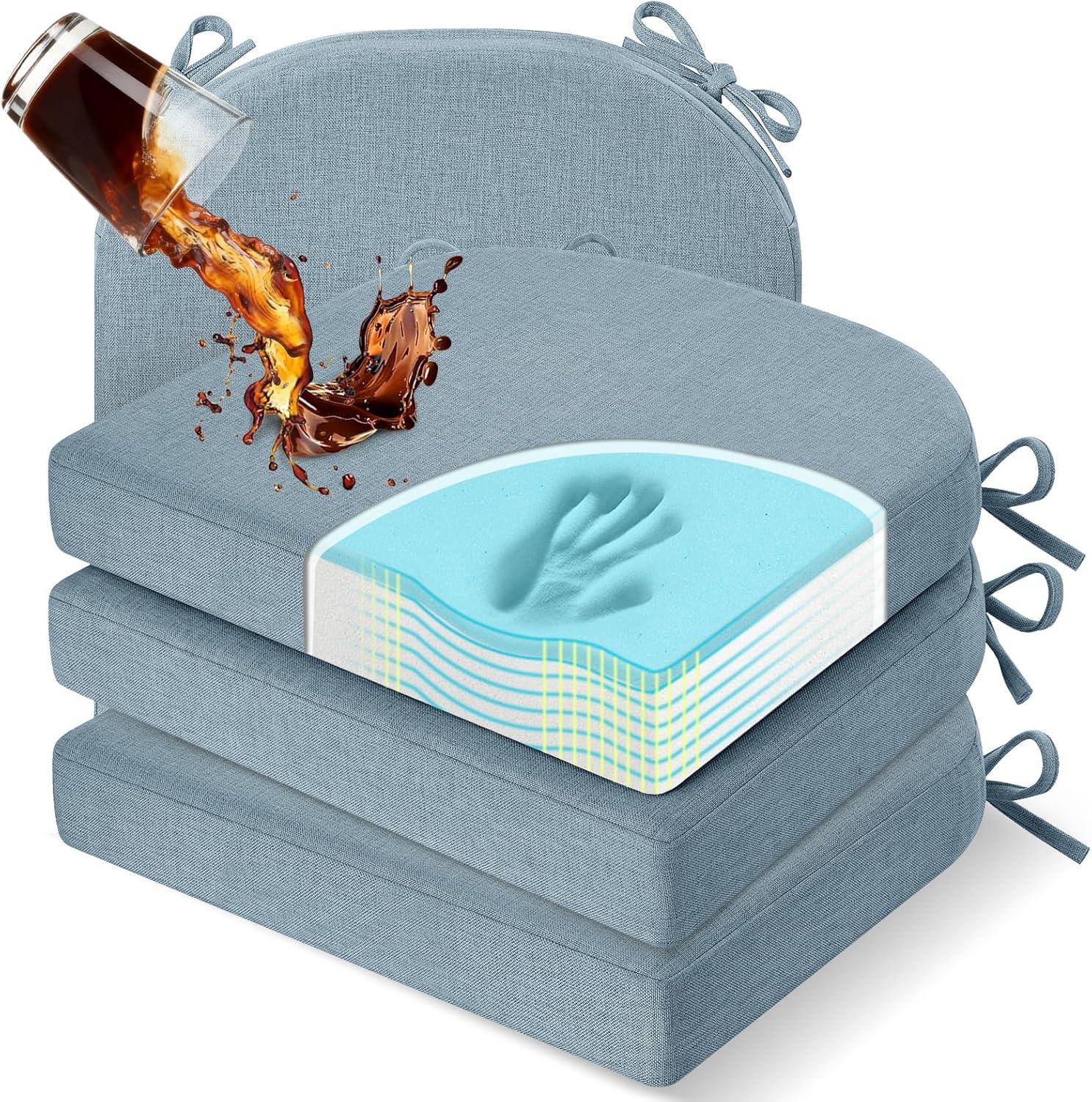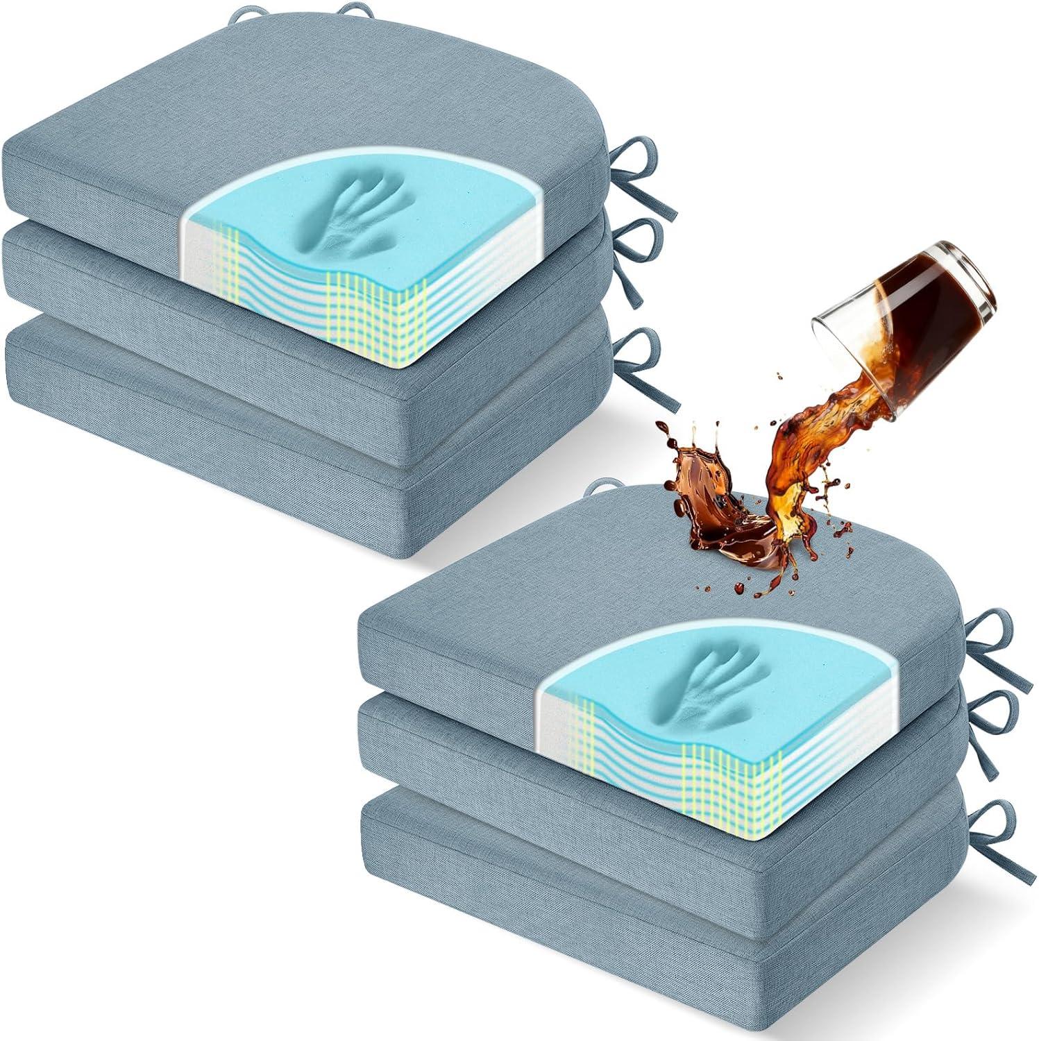 imagedownluxe Chair Cushions for Dining Chairs Memory Foam Kitchen Chair Pads with Ties Waterproof StainResistant and Washable Cover 17quot x 16quot x 25quot Black 6 PackBlue