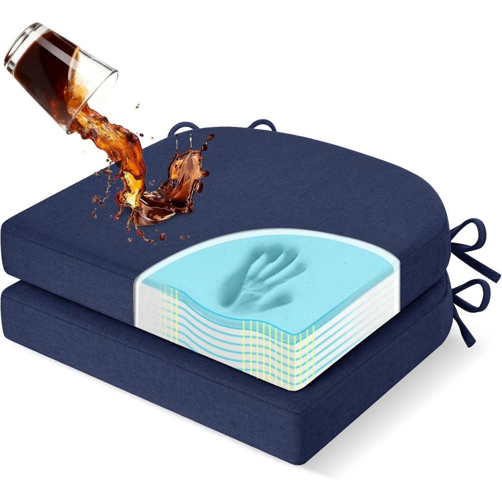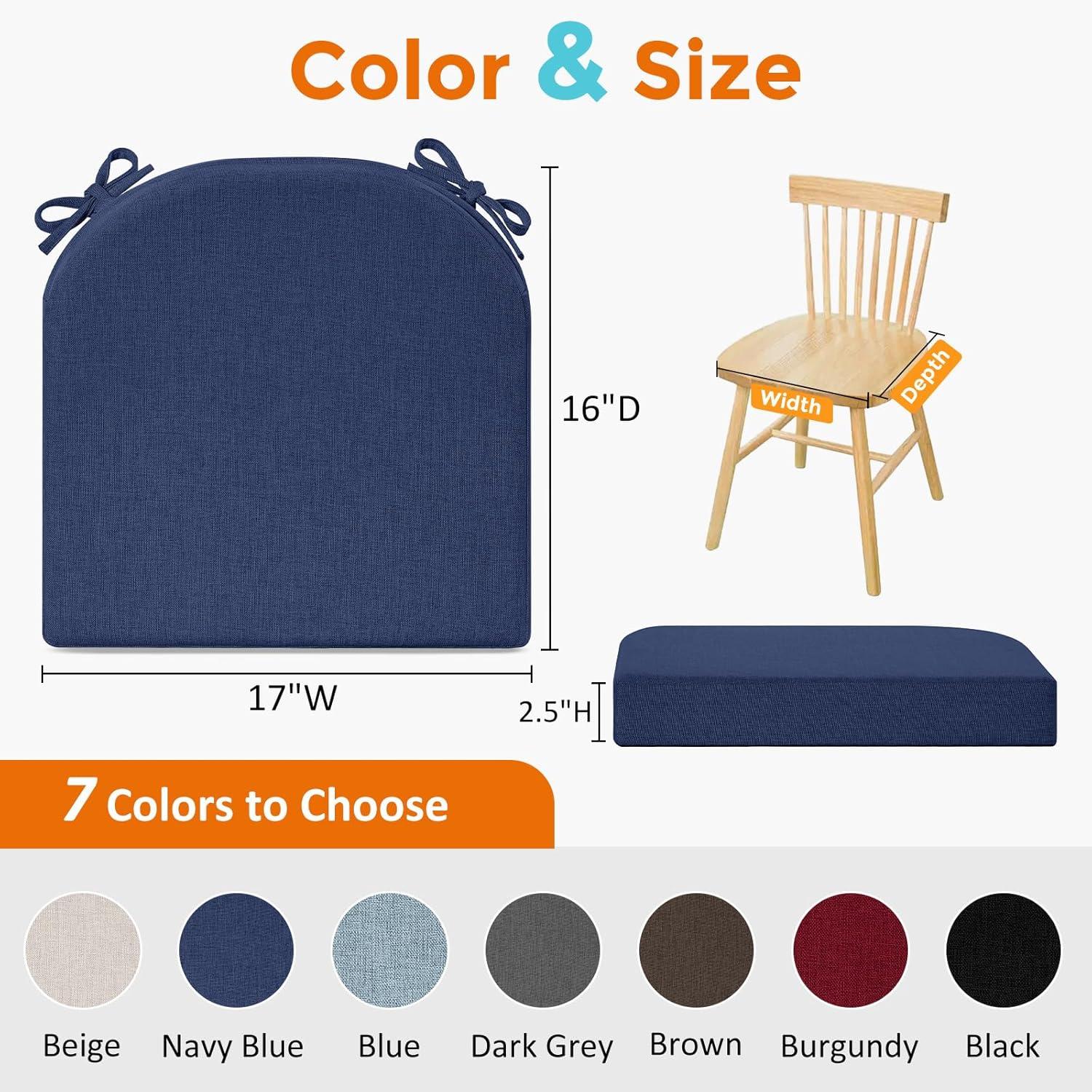 downluxe Chair Cushions for Dining Chairs, Memory Foam Kitchen Chair Pads with Ties, Waterproof, Stain-Resistant and Washable Cover, 17″ x 16″ x 2.5″, Black, 6 Pack(Navy Blue)