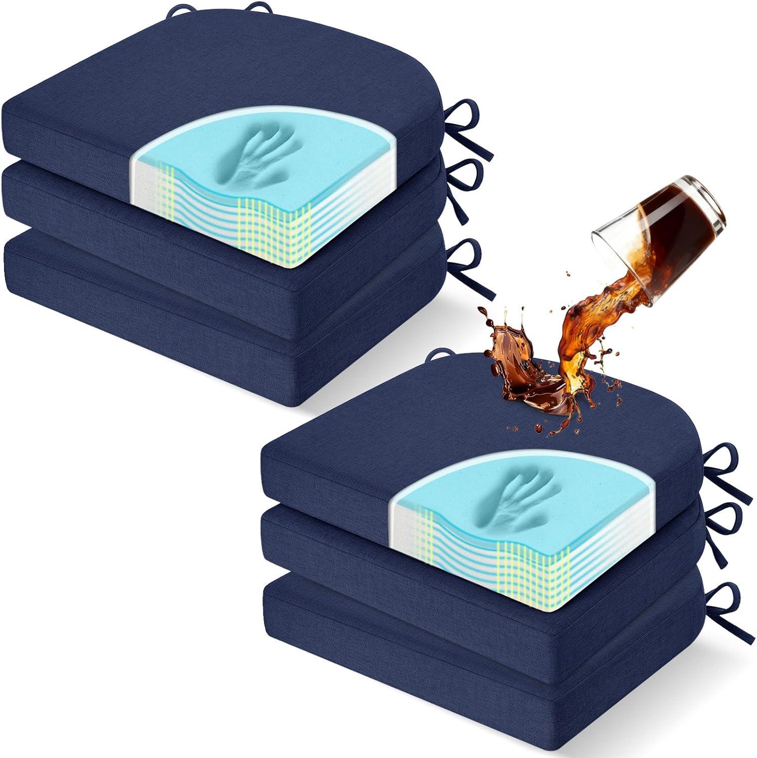 imagedownluxe Chair Cushions for Dining Chairs Memory Foam Kitchen Chair Pads with Ties Waterproof StainResistant and Washable Cover 17quot x 16quot x 25quot Black 6 PackNavy Blue