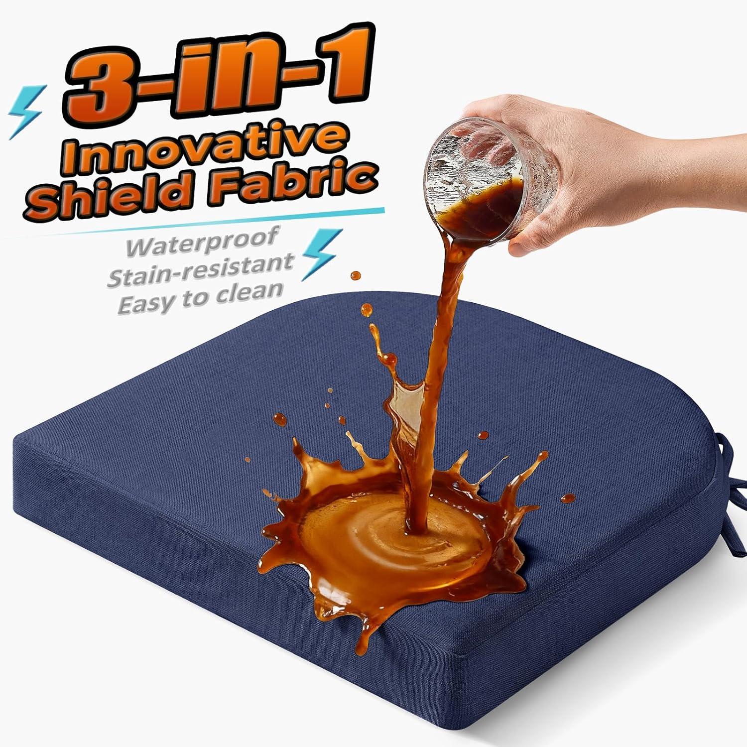 Innovative 3-in-1 Shield Fabric: Our dining chair cushions are crafted with a technical fabric that resists water, dust and stains. From morning coffee and kids' meal-time messes to evening wine, daily spills bead up and can be wiped away in seconds