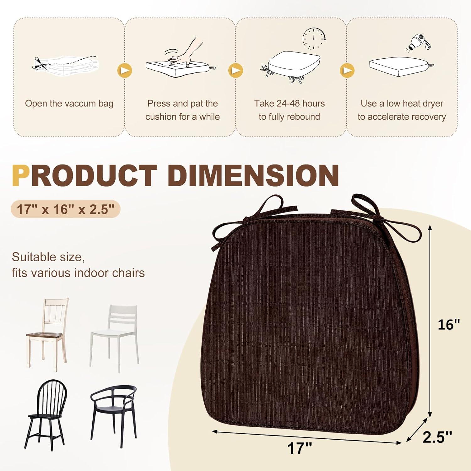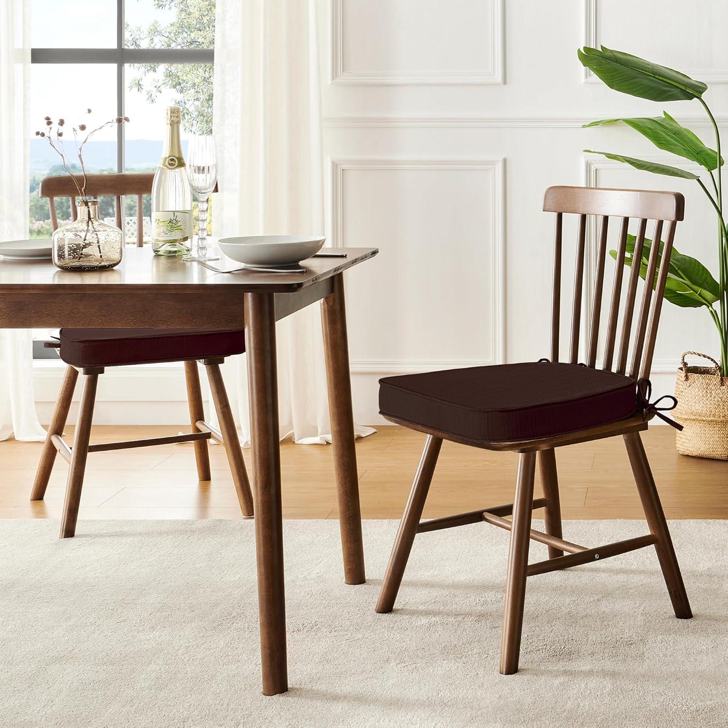 downluxe Chair Cushions for Dining Chairs, Waterproof Kitchen Chair Pads, Non-Slip Dining Seat Cushion with Ties, 17″ x 16″ x 2.5″, Burgundy, 4 Pack(Brown)