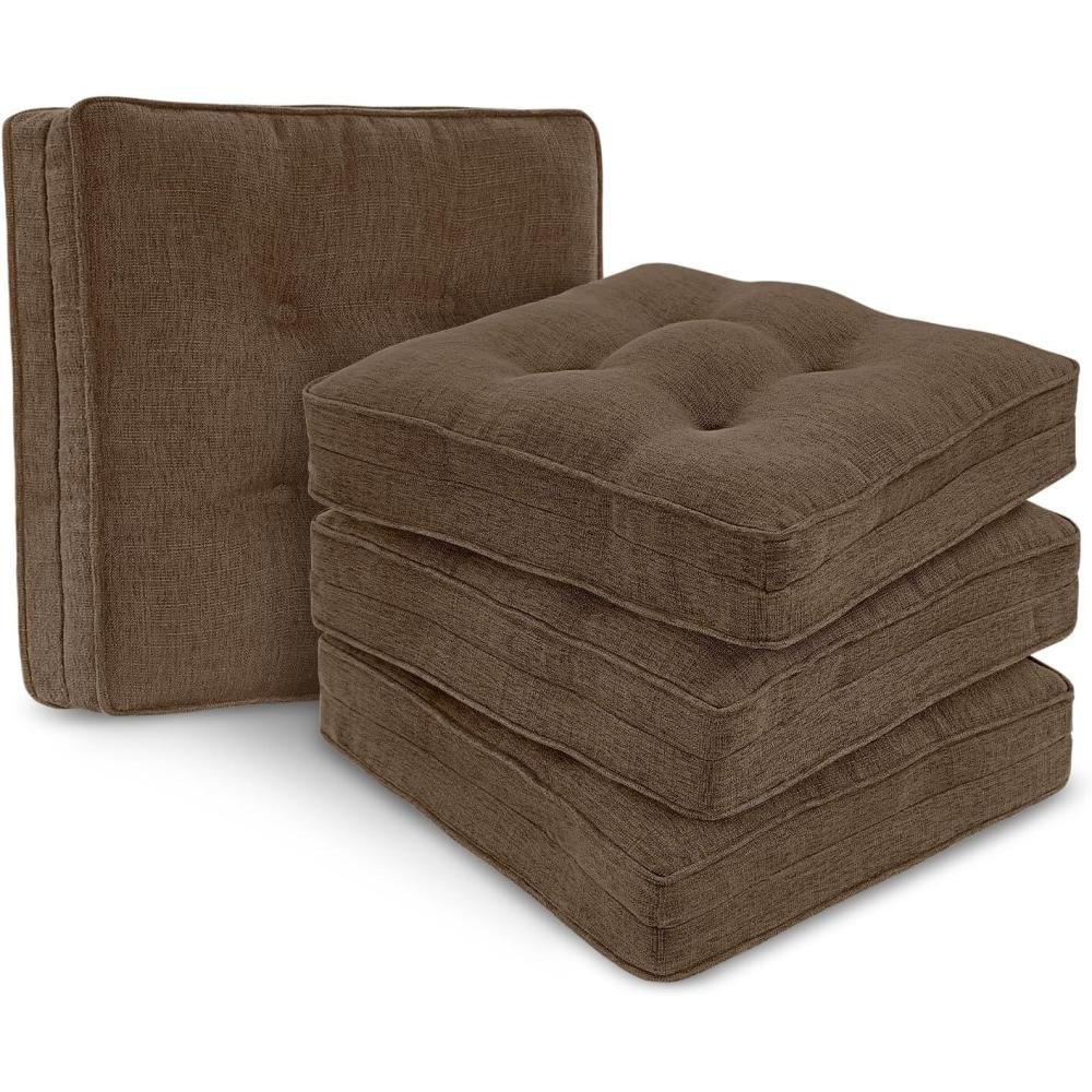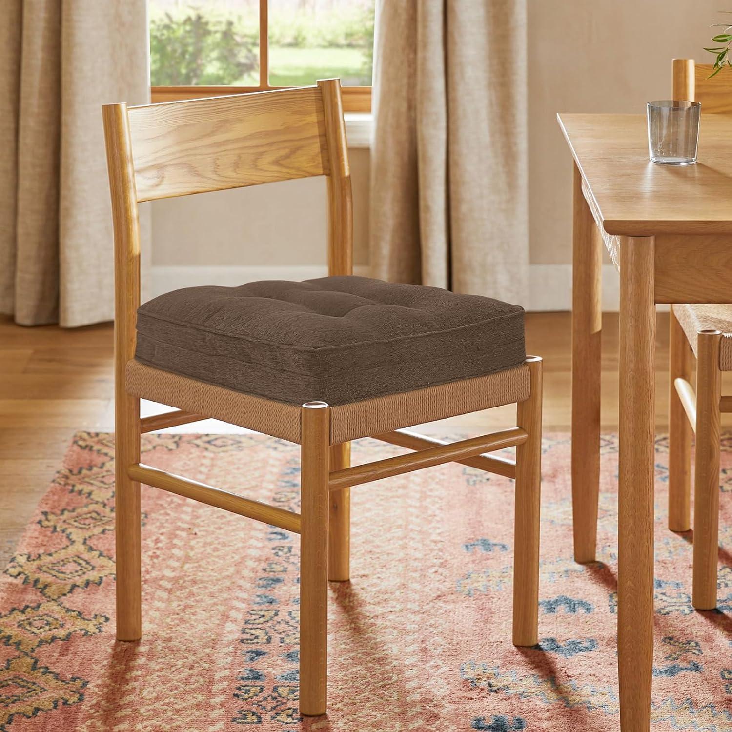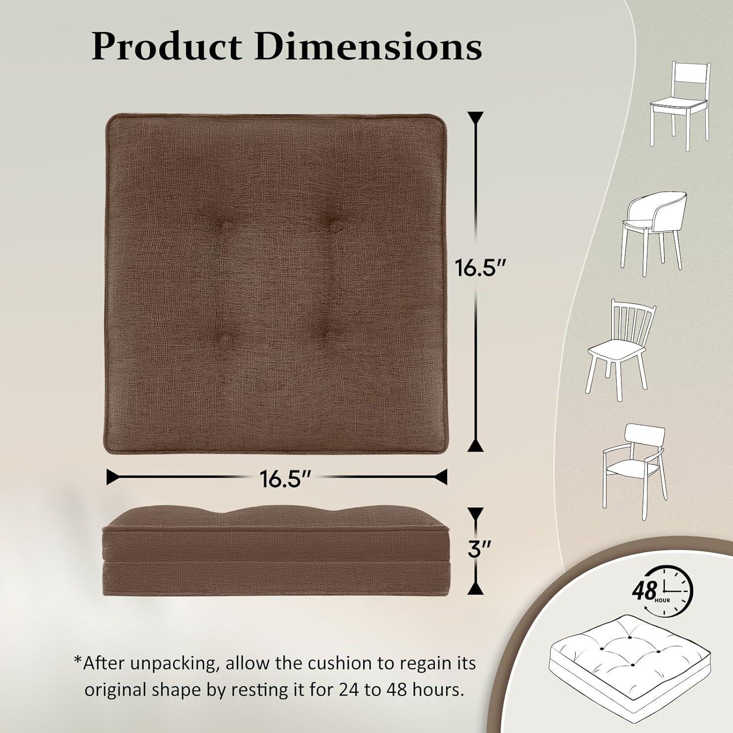 imagedownluxe Chair Cushions for Dining Chairs with Ties NonSlip Memory Foam Kitchen Chair Cushions Tufted Seat Cushions for Kitchen Chairs DualLayer Chair Pads 165 x 165 x 3 Set of 4 Brown