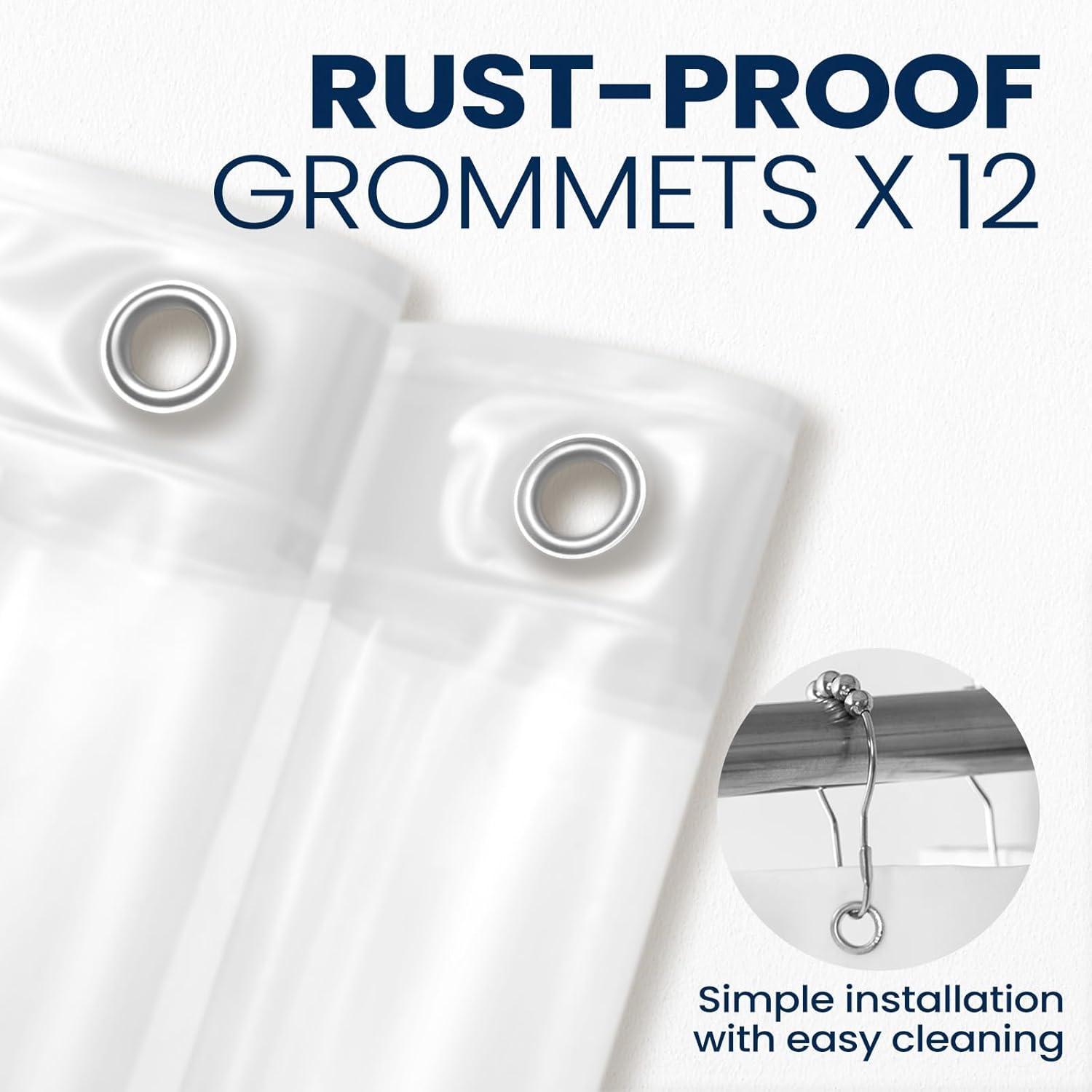 For Long-lasting Use: Reinforced top header with 12 metal grommets can make this plastic shower curtain liner easy to hang and hard to tear