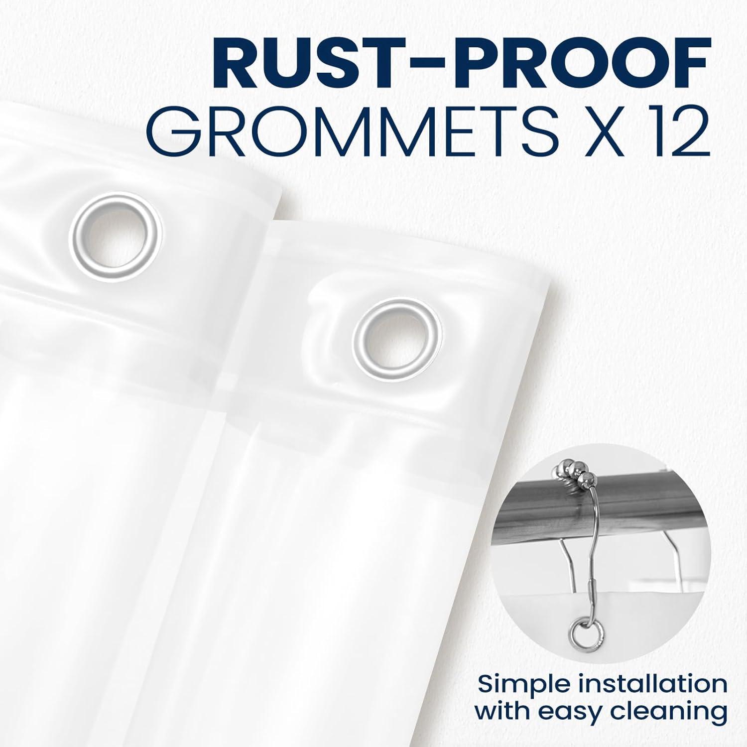 For Long-lasting Use: Reinforced top header with 12 metal grommets can make this plastic shower curtain liner easy to hang and hard to tear