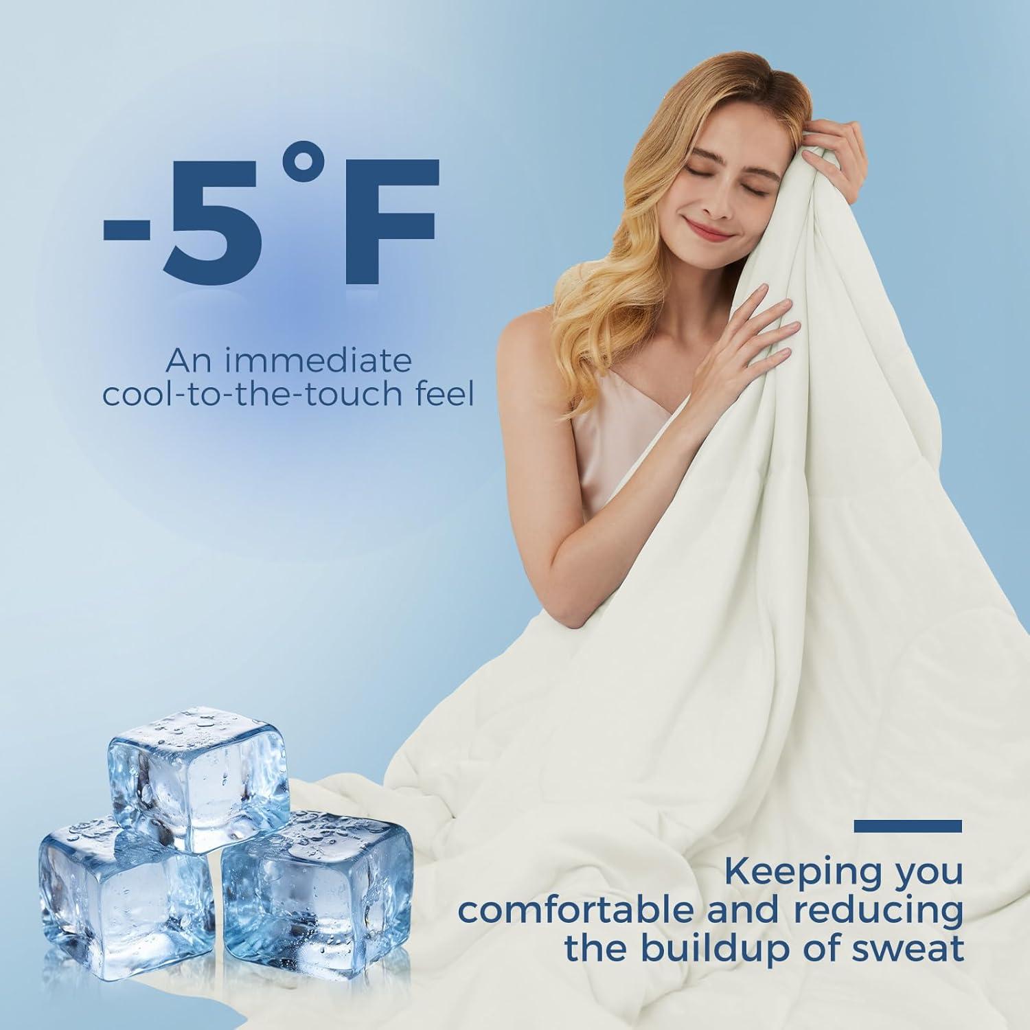 imagedownluxe Cooling Comforter Queen Size Cooling Blankets for Hot Sleepers Cold Blanket Summer Comforter with QMaxampgt04 ArcChill Cooling Fiber Light BlueBeige