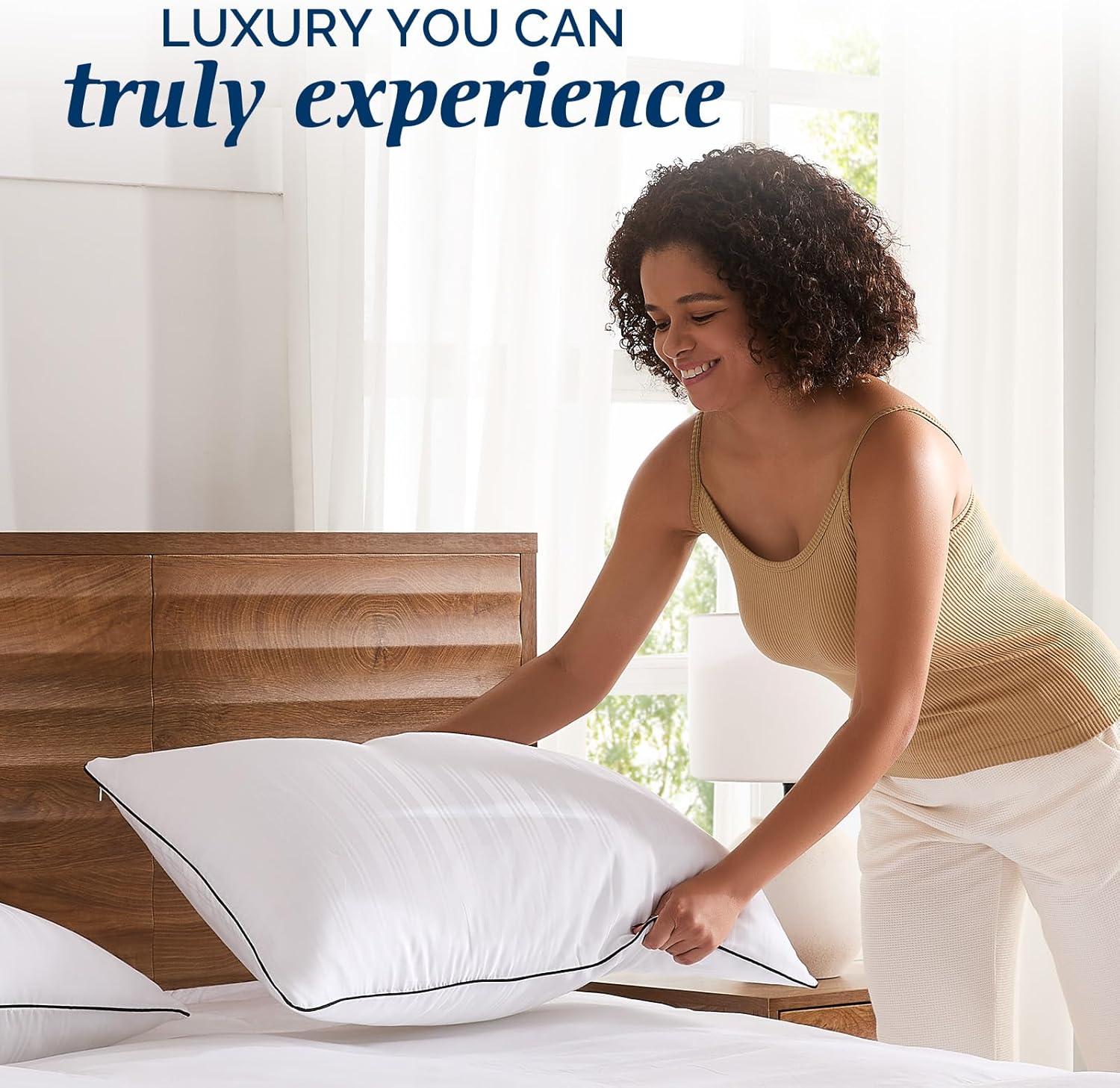 Premium Design: All down feather pillows are finished with a decorative piped edge. Unique double layered fabric design to avoid feathers poke you or go crunch in the night. You have to try it in order to believe it