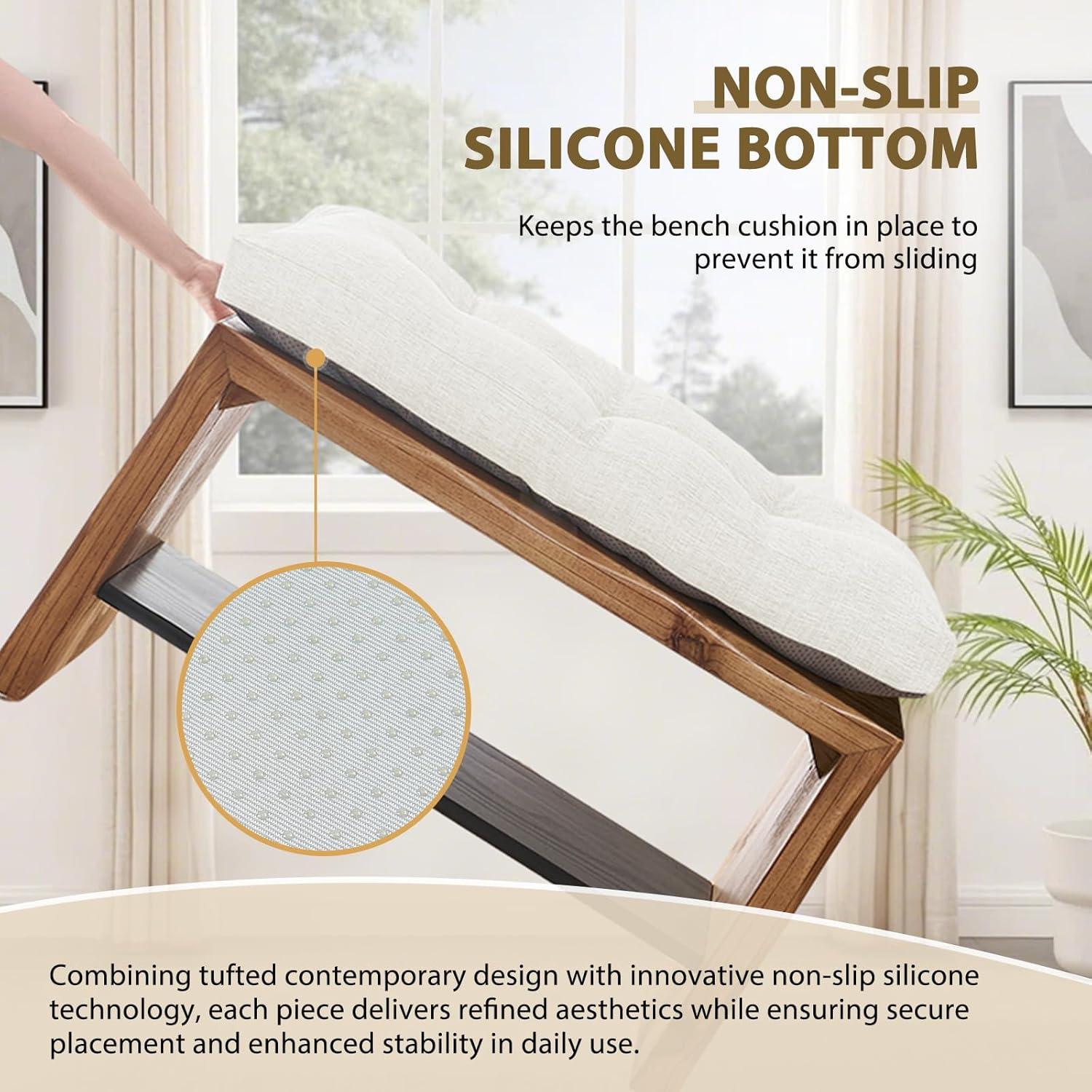 STAY IN PLACE: The non-slip silicone bottom helps keep the cushion for bench securely in place and prevents from sliding. You won't need to adjust the bench cushion 36 inch many times and just concentrate on enjoying your life