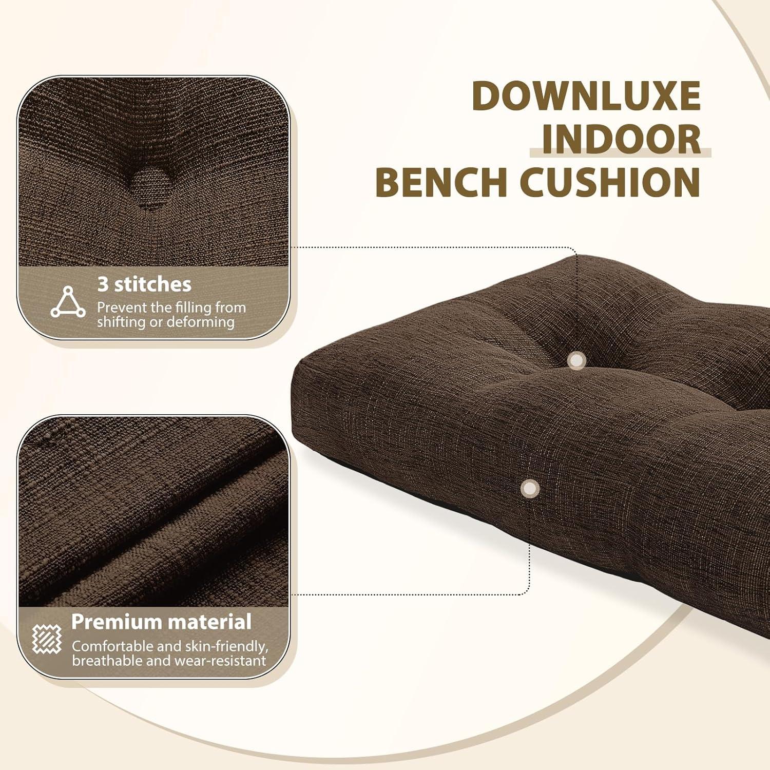 downluxe Indoor Bench Cushion for Indoor Furniture, Non-Slip Tufted Overstuffed Textured Foam Bench Seat Cushion, 36" X 14" X 4", Blue, 2 Pack(Brown)