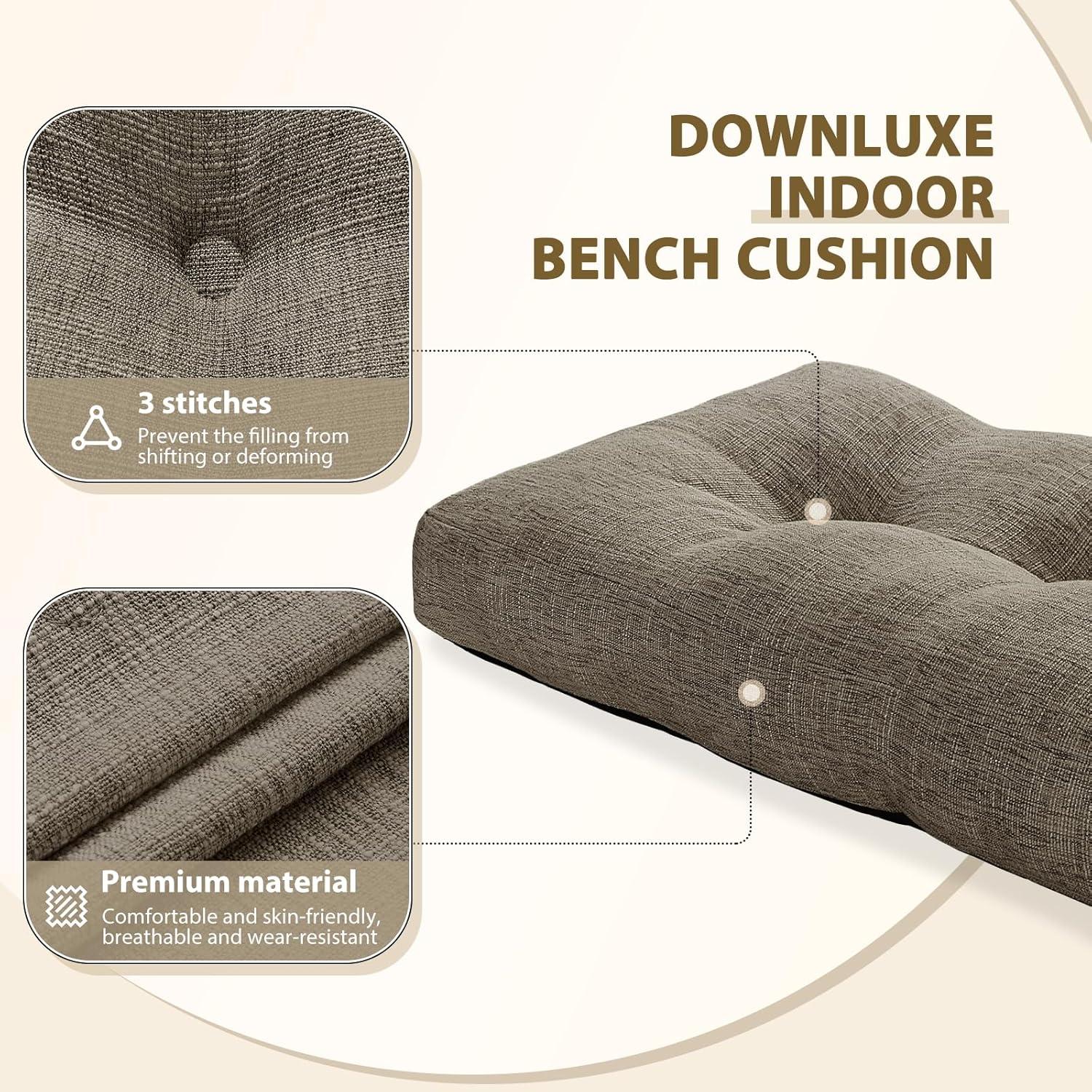 SIZE & PACKAGING: downluxe bench pillow cushion features a tufted design and measures 36″W x 14″D x 4″H. Please note: Due to long-term vacuum packaging during shipping, the cushion may appear smaller at first but will expand to its full size