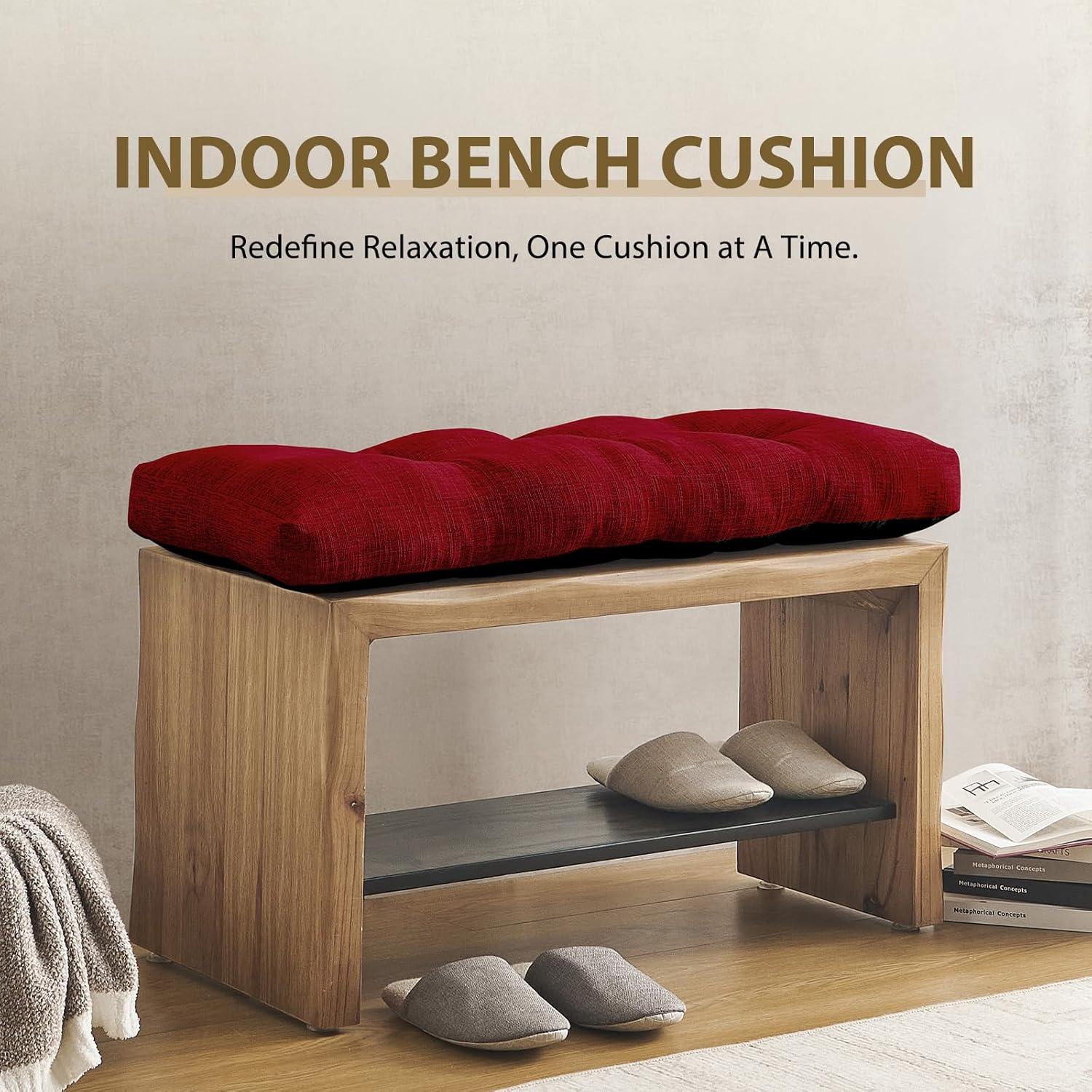 downluxe Indoor Bench Cushion for Indoor Furniture, Non-Slip Tufted Overstuffed Textured Foam Bench Seat Cushion, 36" X 14" X 4", Brown, 1 Pack(Deep Red)