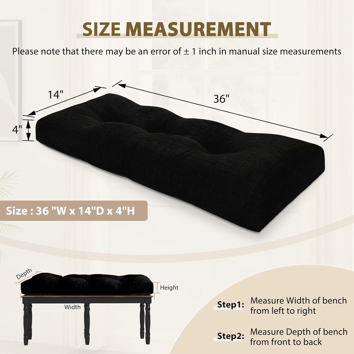 downluxe Indoor Bench Cushion for Indoor Furniture, Non-Slip Tufted Overstuffed Textured Foam Bench Seat Cushion, 36" X 14" X 4", Brown, 1 Pack(Pure Black)