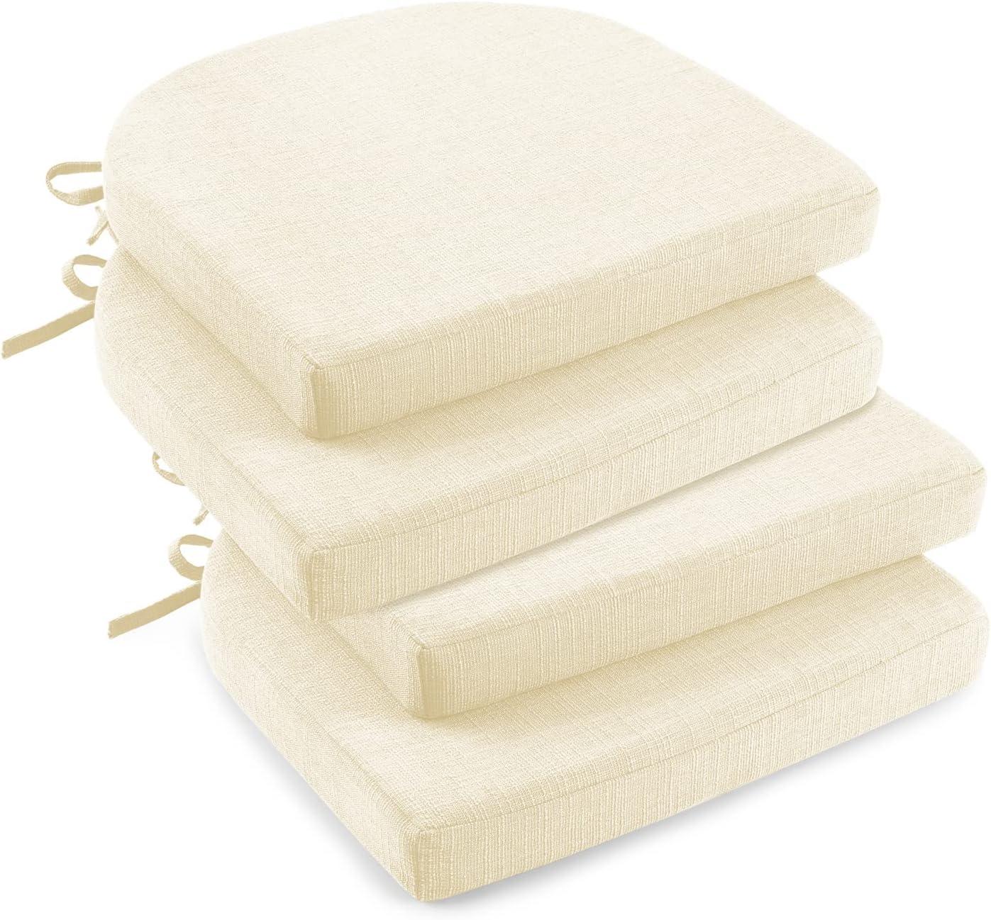 downluxe Indoor Chair Cushions for Dining Chairs, Soft and Comfortable Textured Foam Kitchen Chair Pads with Ties and Non-Slip Backing, 16″ x 16″ x 2″, Dark Grey, 4 Pack(Beige)