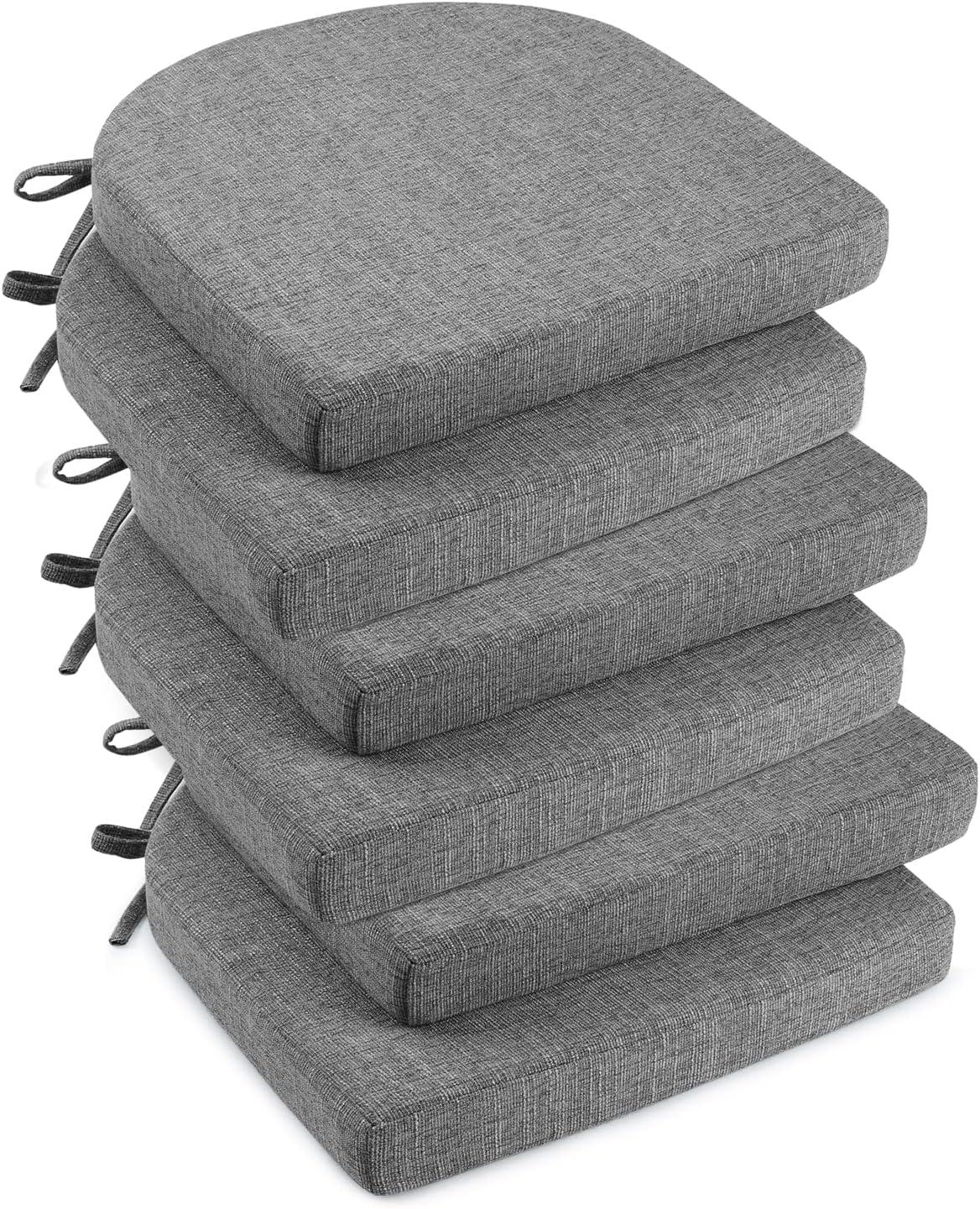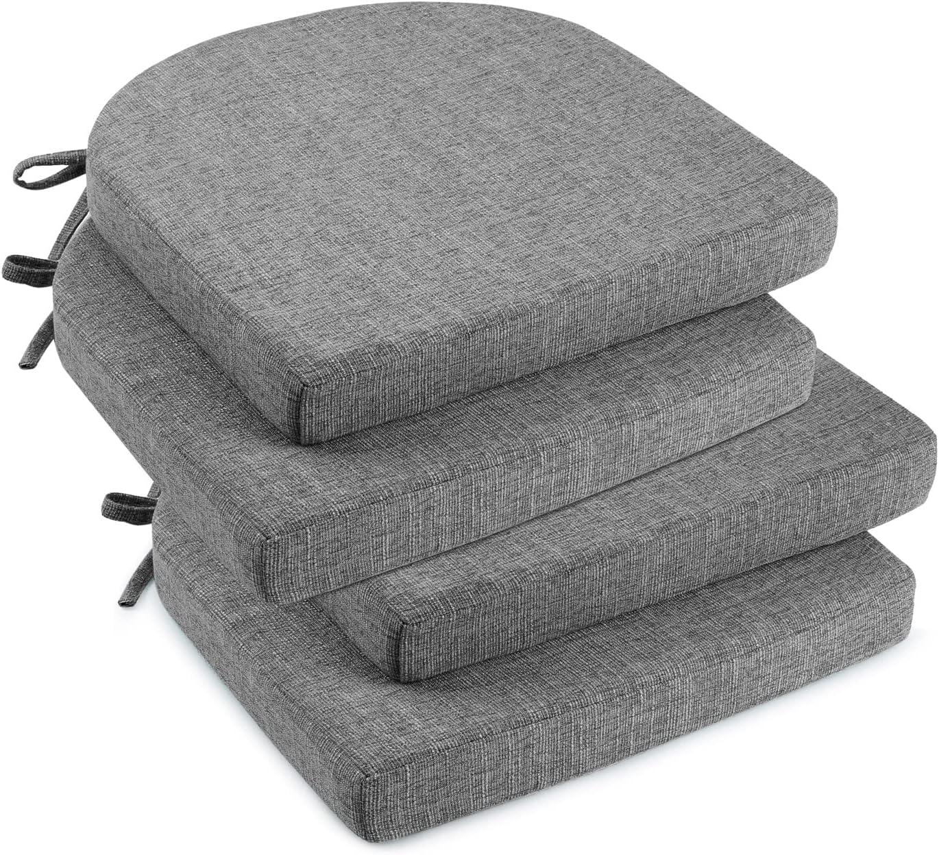 downluxe Indoor Chair Cushions for Dining Chairs, Soft and Comfortable Textured Foam Kitchen Chair Pads with Ties and Non-Slip Backing, 16″ x 16″ x 2″, Dark Grey, 4 Pack(Khaki)