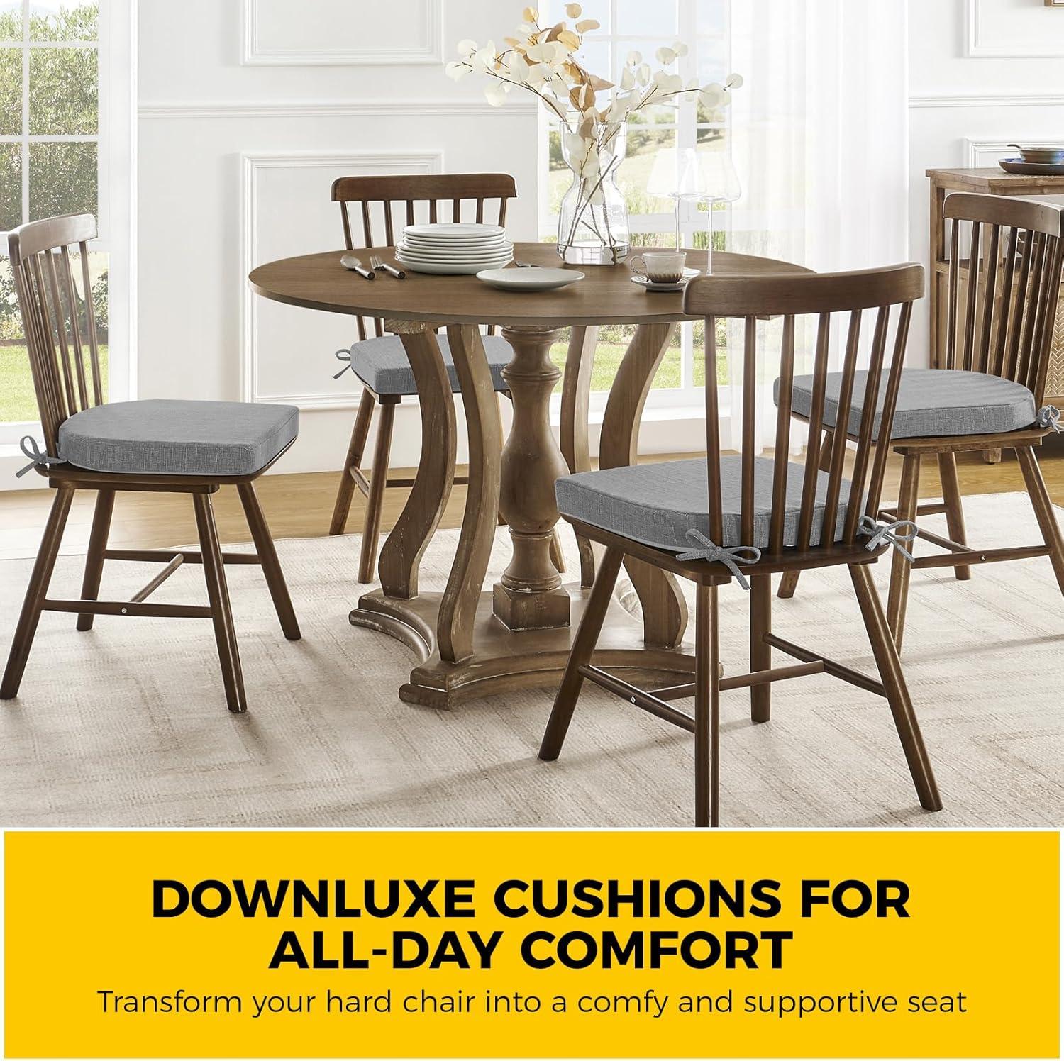 downluxe Indoor Chair Cushions for Dining Chairs, Soft and Comfortable Textured Foam Kitchen Chair Pads with Ties and Non-Slip Backing, 16" x 16" x 2", Dark Grey, 4 Pack(Dark Grey)