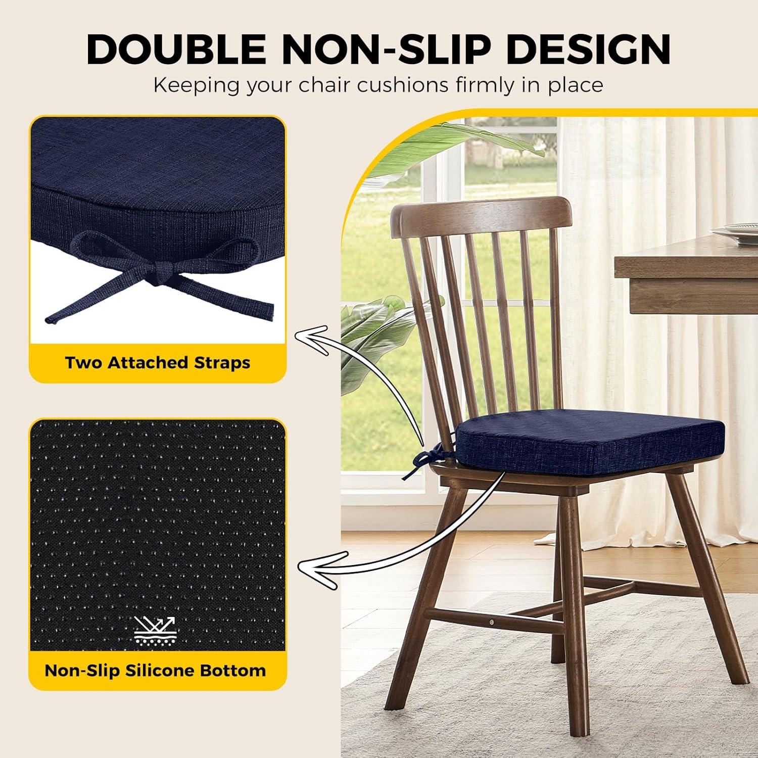 downluxe Indoor Chair Cushions for Dining Chairs, Soft and Comfortable Textured Foam Kitchen Chair Pads with Ties and Non-Slip Backing, 16″ x 16″ x 2″, Dark Grey, 4 Pack(Navy)