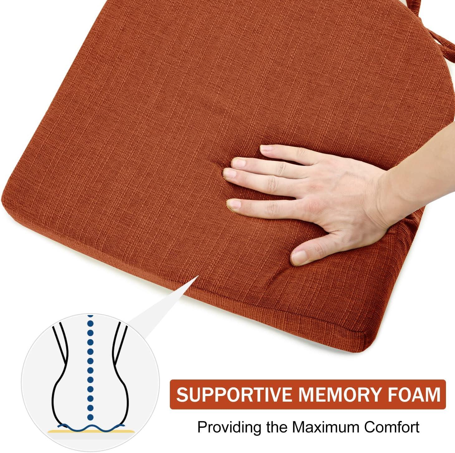 downluxe Indoor Chair Cushions for Dining Chairs, Soft and Comfortable Textured Foam Kitchen Chair Pads with Ties and Non-Slip Backing, 16″ x 16″ x 2″, Dark Grey, 4 Pack(Orange)