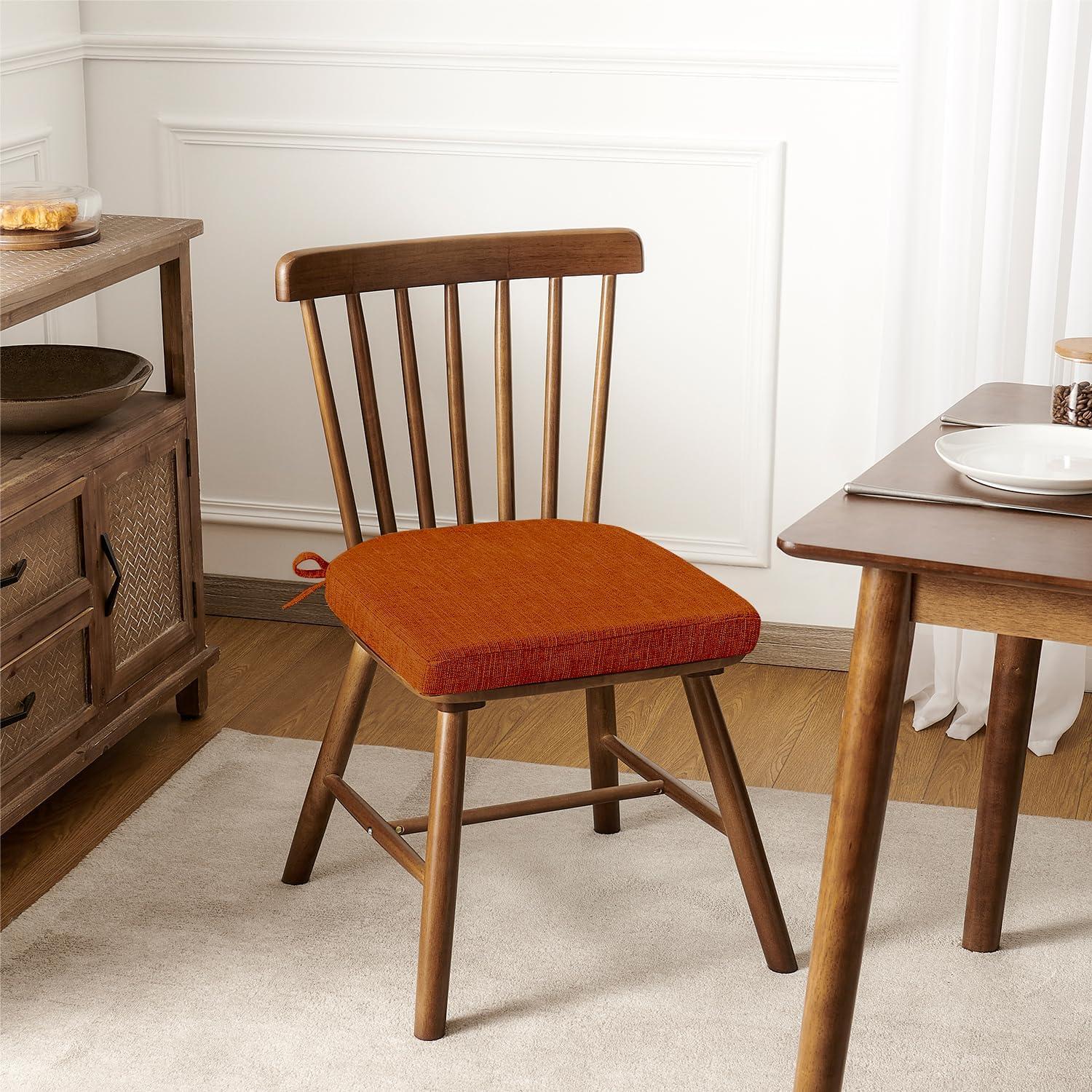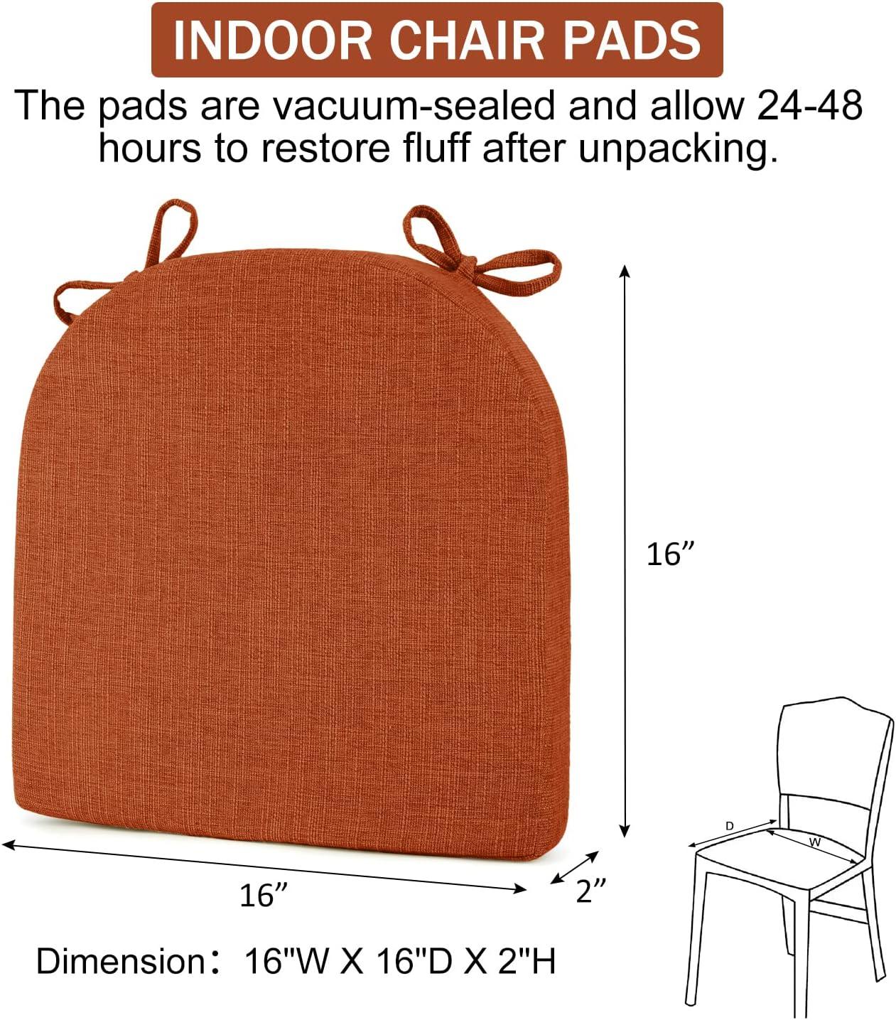 imagedownluxe Indoor Chair Cushions for Dining Chairs Soft and Comfortable Textured Foam Kitchen Chair Pads with Ties and NonSlip Backing 16quot x 16quot x 2quot Dark Grey 4 PackOrange