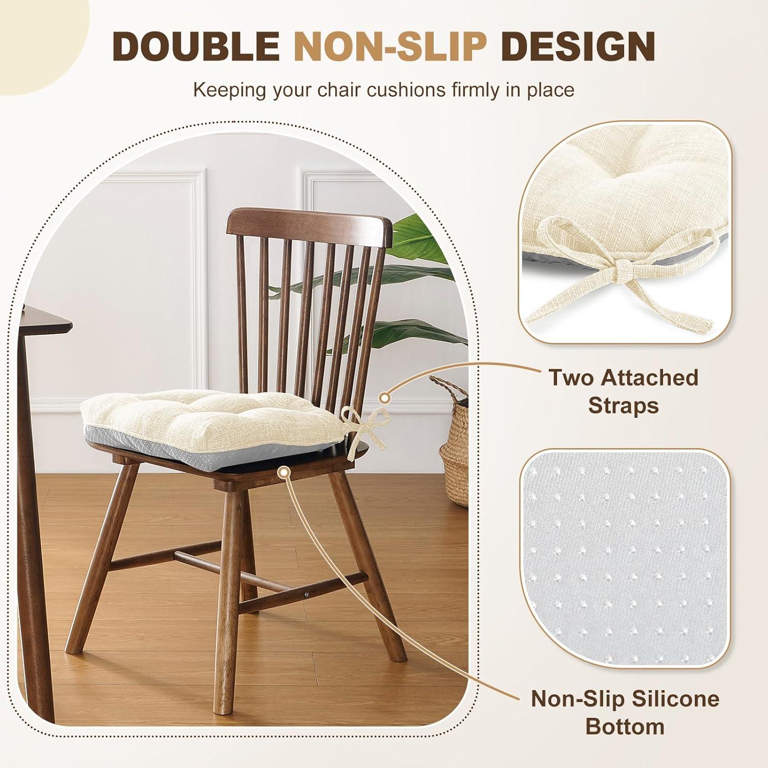 Stay in Place: Attached ties and non-slip silicone bottom can double keep the seat cushion in place absolutely to prevent it from sliding. You don't need to adjust the dining chair cushions many times and just concentrate on enjoying your life