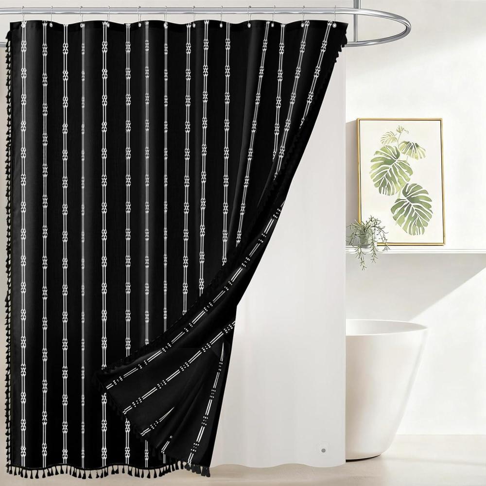 Be the first to review “downluxe Linen Texture 3 in 1 Farmhouse Shower Curtain Set with Tassel, Boho Fabric Shower Curtains for Bathroom, Grey, 72W x 72L(Black)”