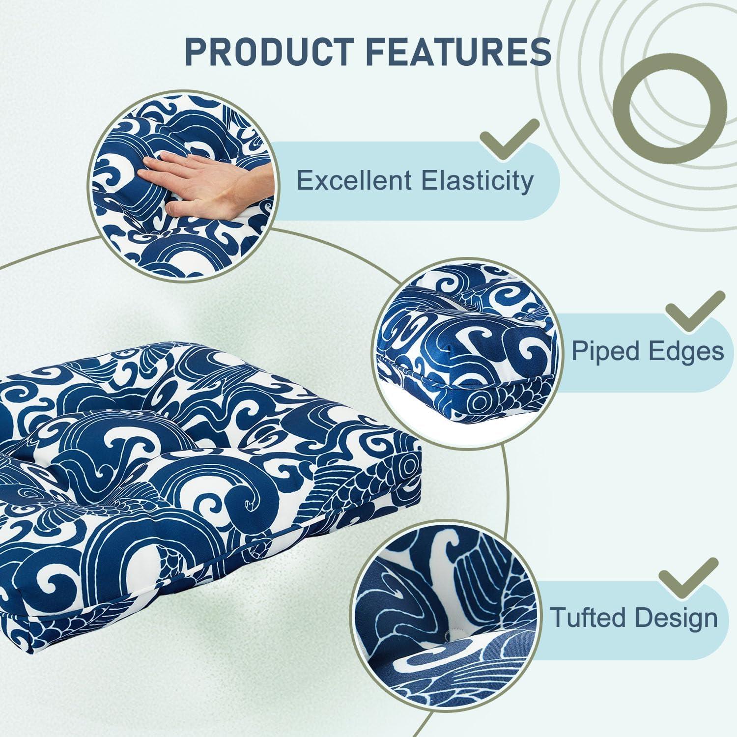 downluxe Outdoor Chair Cushions Set of 2 for Patio Furniture, Waterproof Tufted Overstuffed Patio Furniture Cushions, Memory Foam Outdoor Seat Cushion, 19" X 19" X 5", Khaki(Blue Carp)