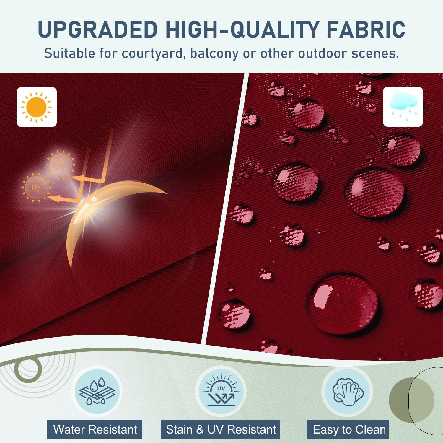 Premium Fabric: Outdoor cushions are made of polyester fabric which is water, stain and UV resistant. The fabric can withstand daily wear and tear, but it is recommended to bring them indoors when raining to preserve lifespan and maintain appearance