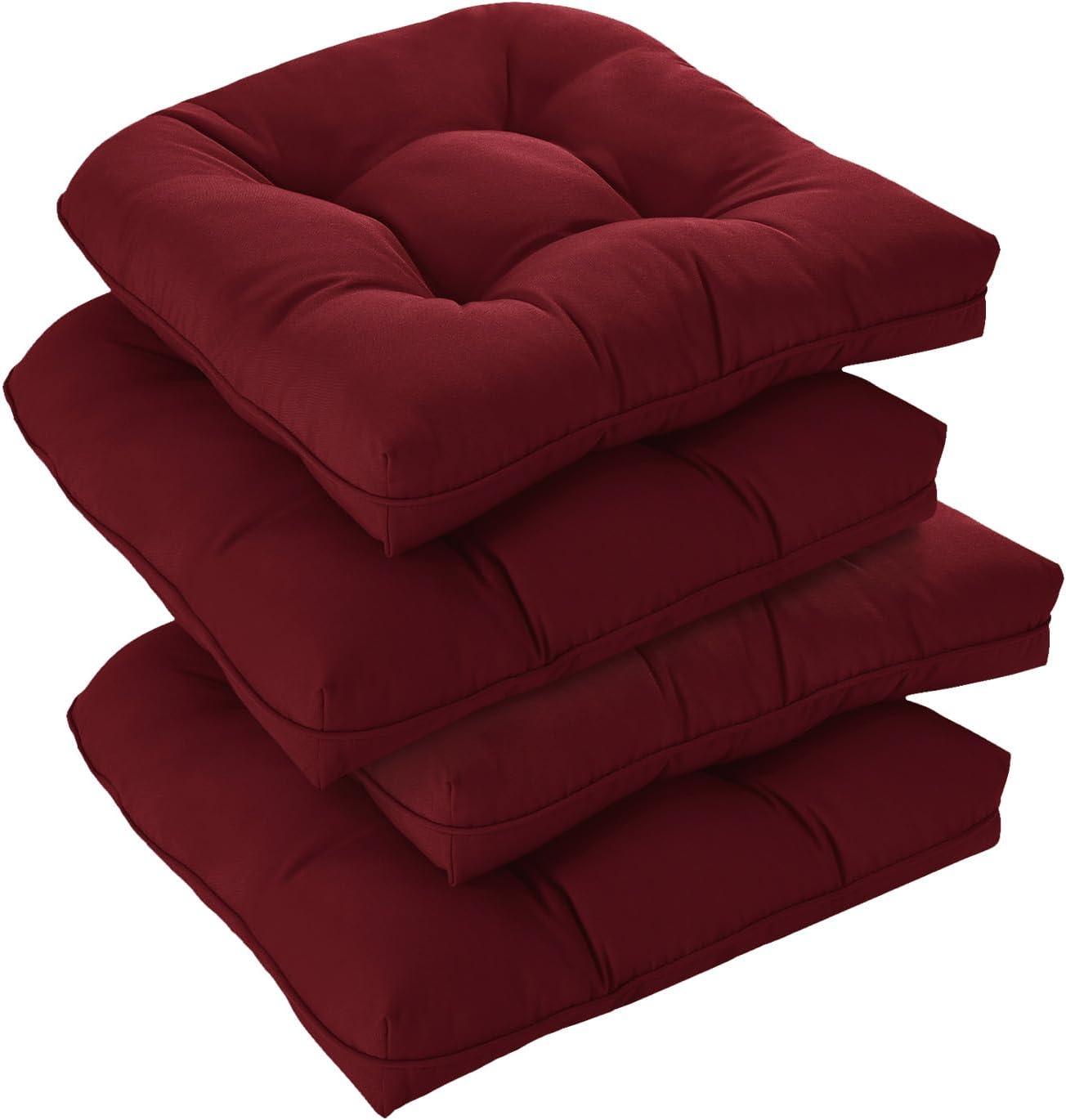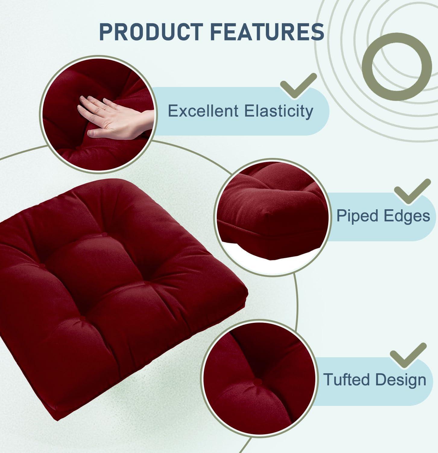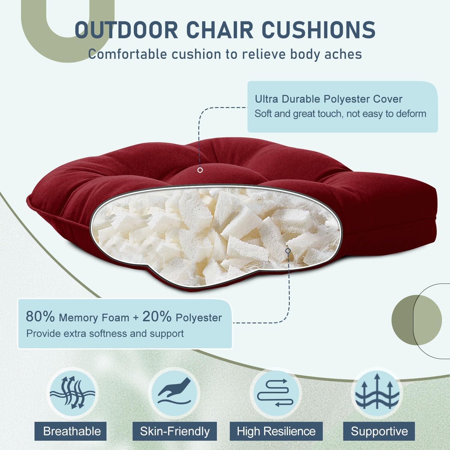 downluxe Outdoor Chair Cushions Set of 2 for Patio Furniture, Waterproof Tufted Overstuffed Patio Furniture Cushions, Memory Foam Outdoor Seat Cushion, 19″ X 19″ X 5″, Khaki(Burgundy)