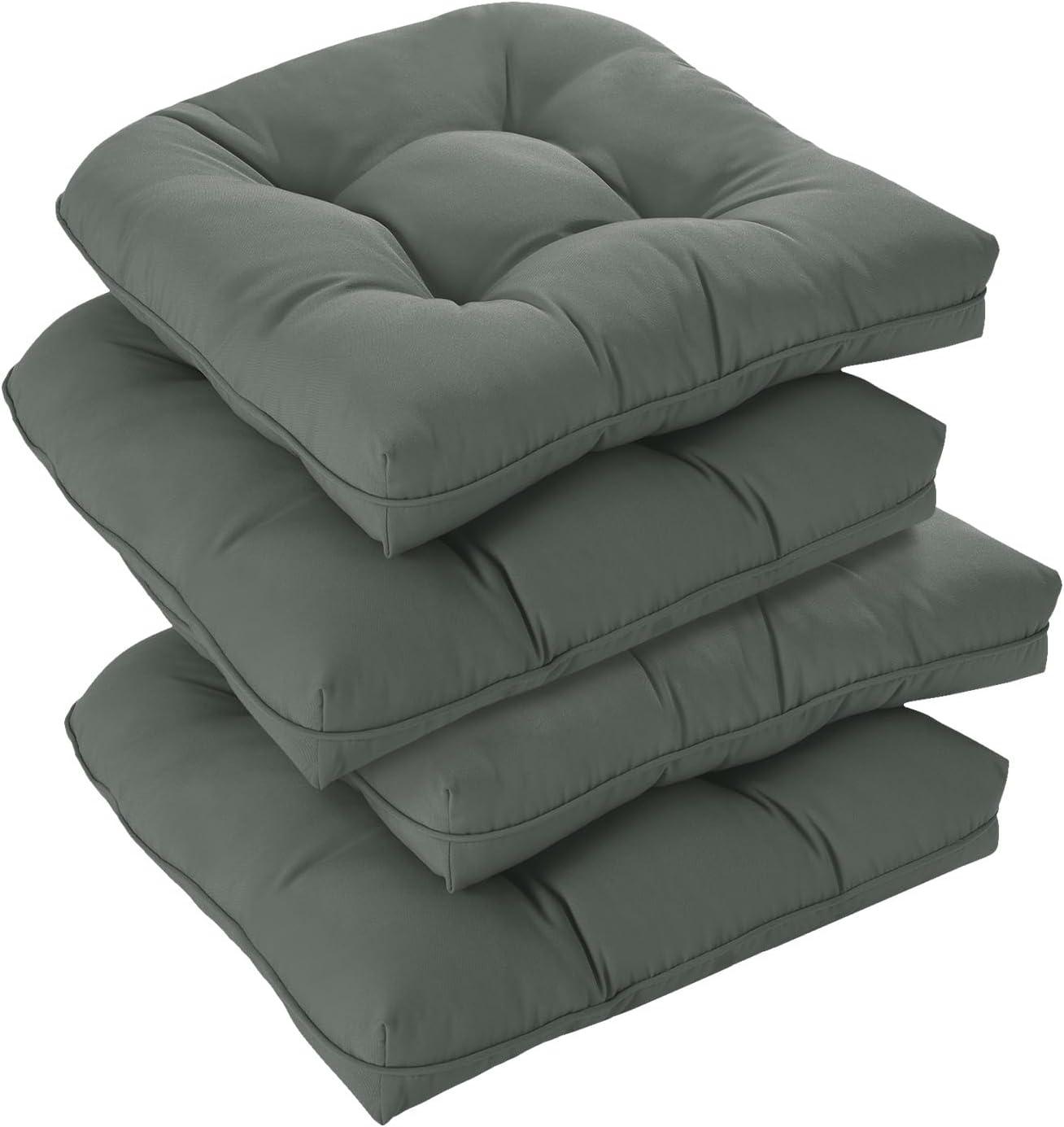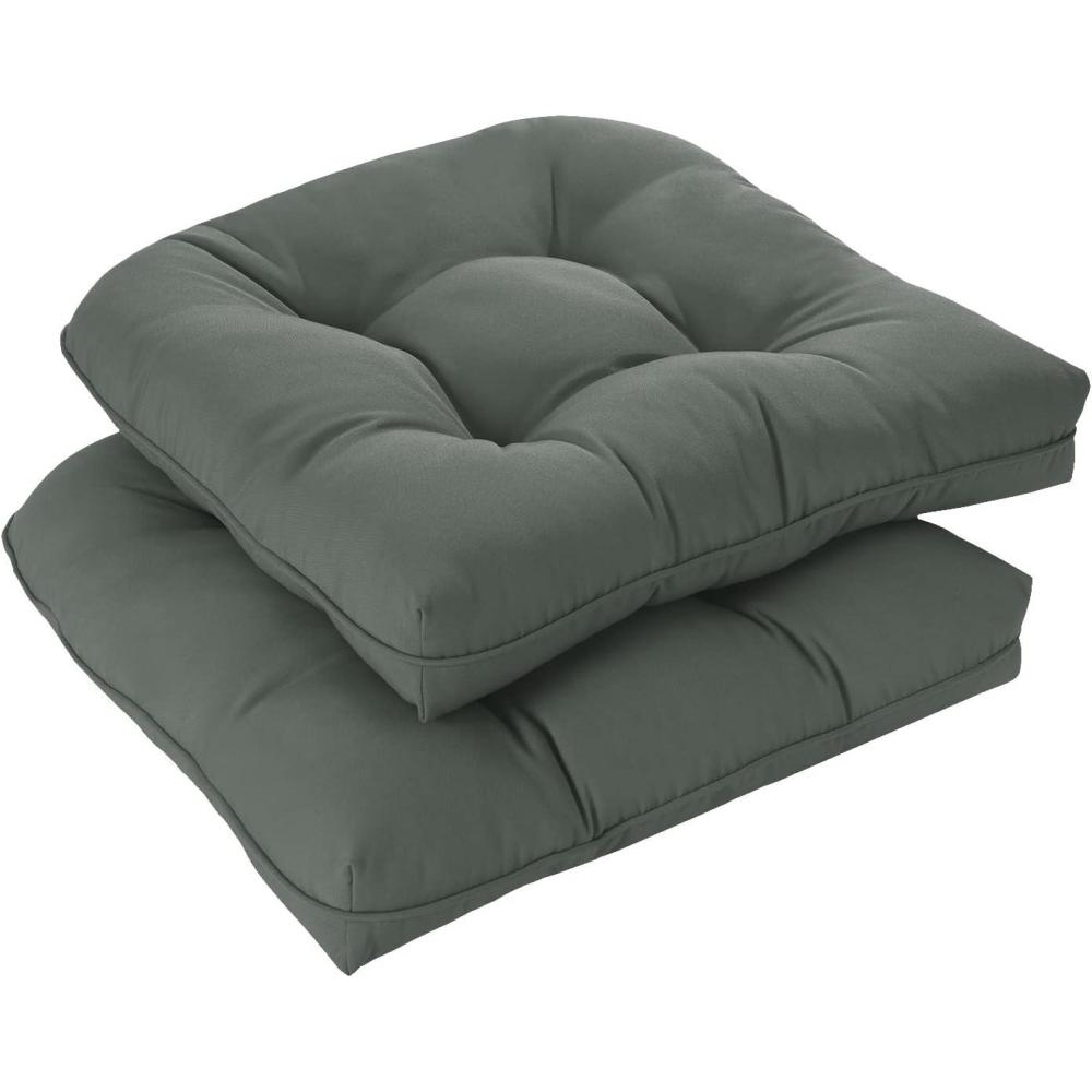 downluxe Outdoor Chair Cushions Set of 2 for Patio Furniture, Waterproof Tufted Overstuffed Patio Furniture Cushions, Memory Foam Outdoor Seat Cushion, 19″ X 19″ X 5″, Khaki(Forest Green)