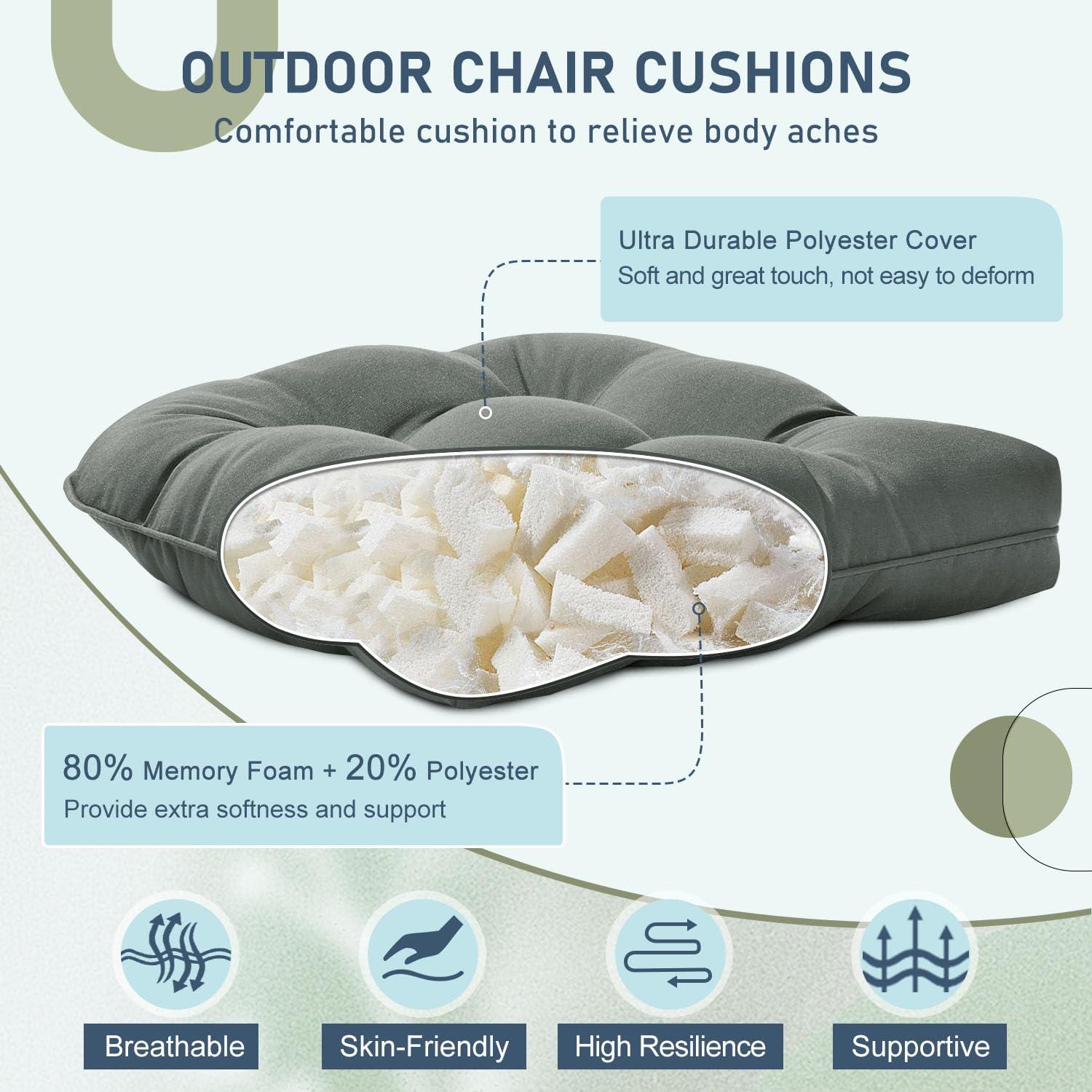 High Resilience Filling: The patio chair cushions are filled with 80% polyurethane foam and 20% polyester that is soft and supportive, providing effective cushioning and reducing pain in the lower back, tailbone and hips by evenly distributing body weight