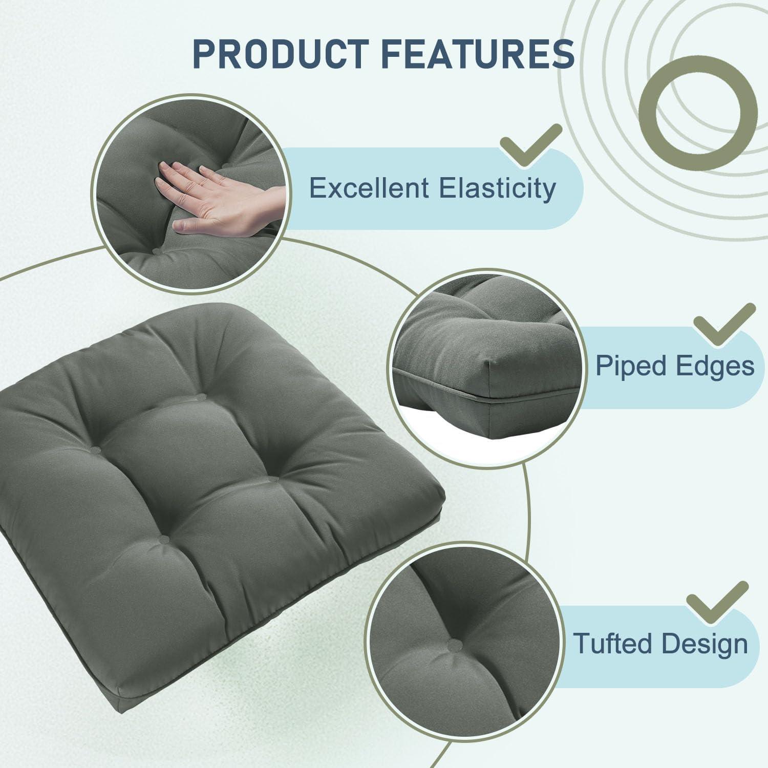 downluxe Outdoor Chair Cushions Set of 2 for Patio Furniture, Waterproof Tufted Overstuffed Patio Furniture Cushions, Memory Foam Outdoor Seat Cushion, 19" X 19" X 5", Khaki(Dark Grey)