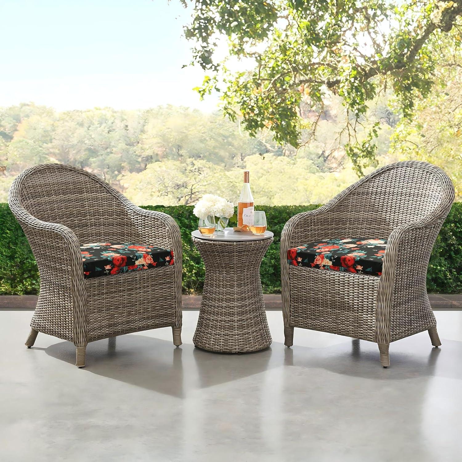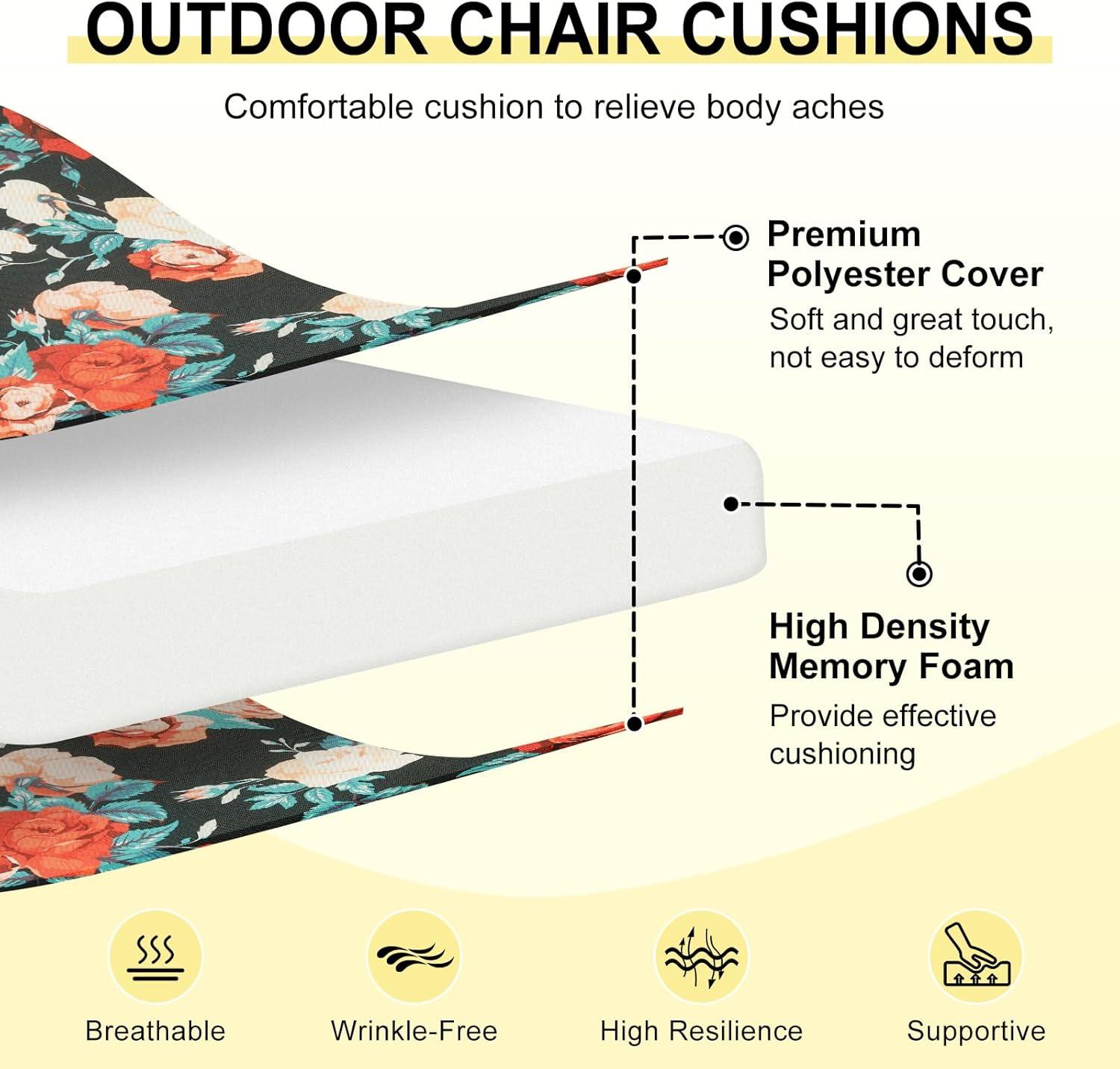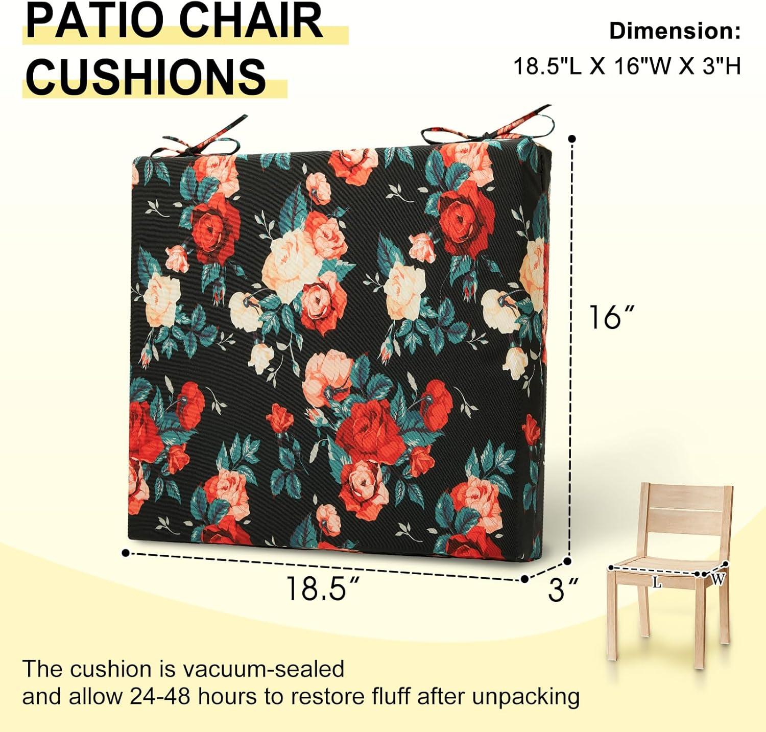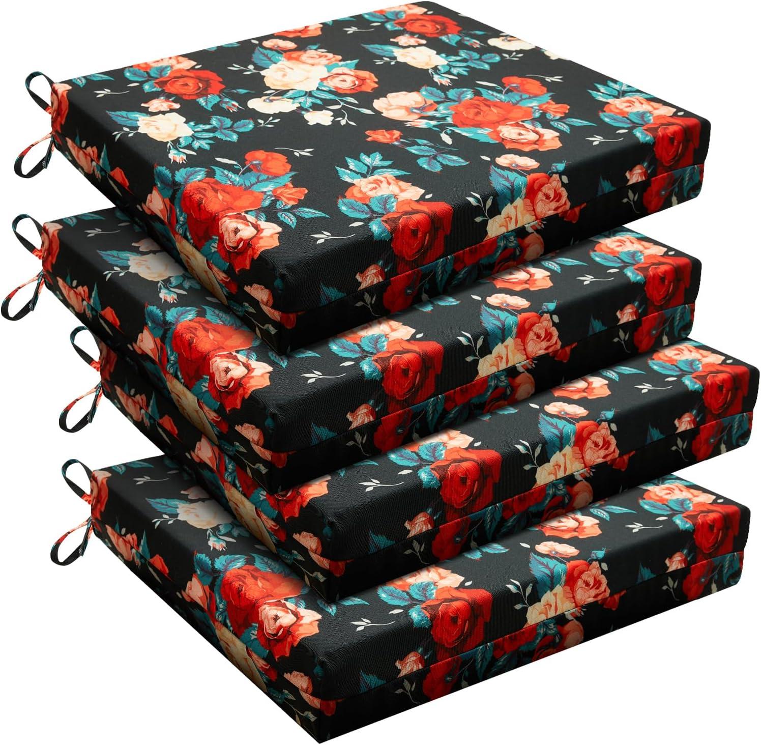 downluxe Outdoor Chair Cushions Set of 4 for Patio Furniture, Water-Resistant Square Corner Patio Chair Cushions with Ties, High Density Foam Outdoor Seat Cushion, 18.5" X 16" X 3", Black(Elegant Rose)
