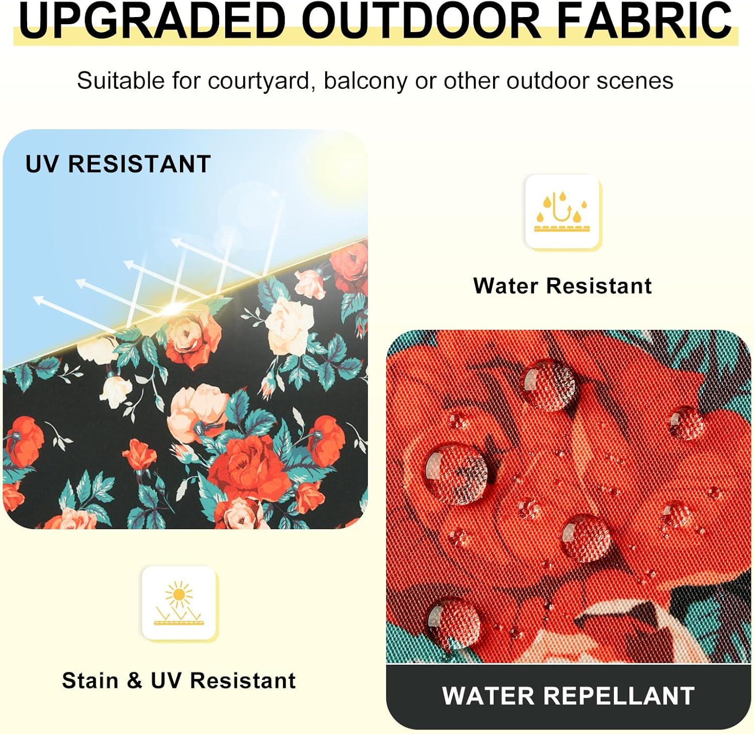 Premium Fabric: Outdoor cushions are made of polyester fabric which is water, stain and UV resistant. The fabric can withstand daily wear and tear, but it is recommended to bring them indoors when raining to preserve lifespan and maintain appearance