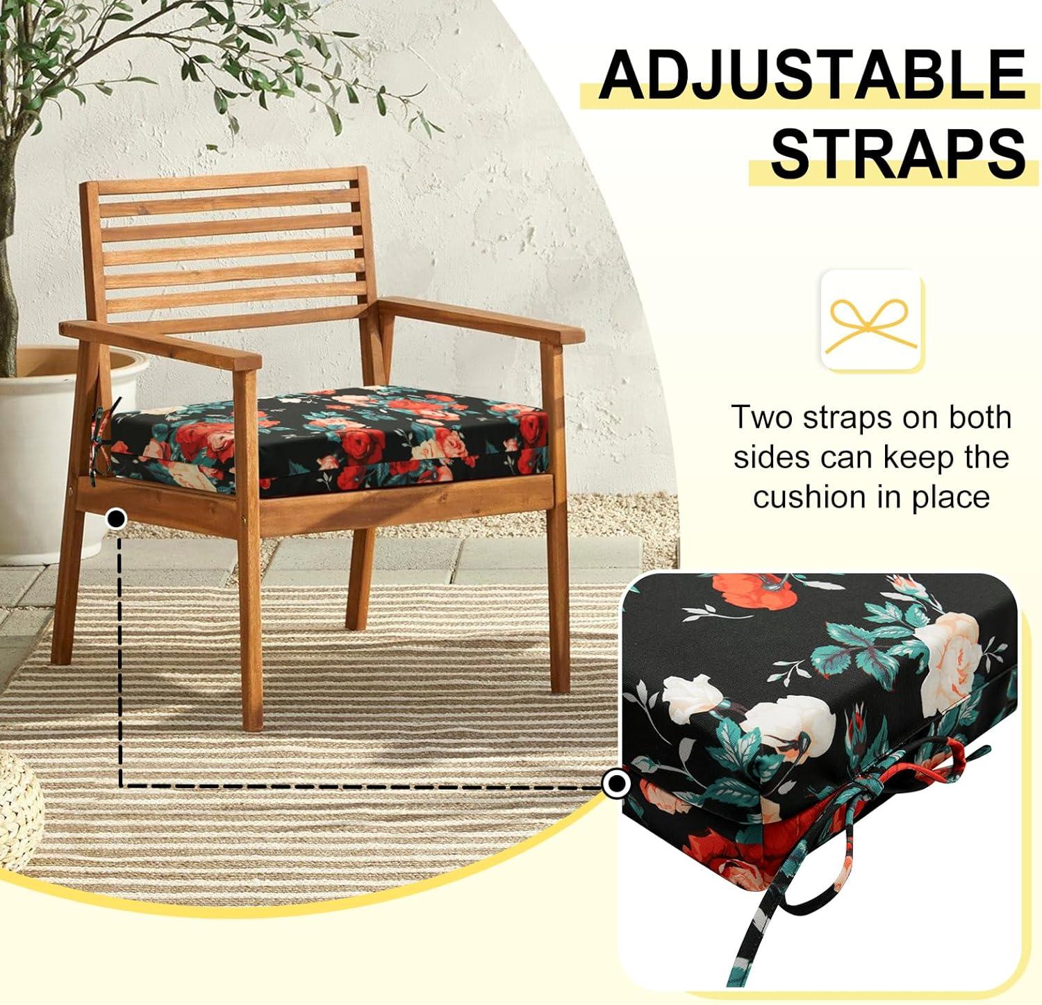 downluxe Outdoor Chair Cushions Set of 4 for Patio Furniture, Water-Resistant Square Corner Patio Chair Cushions with Ties, High Density Foam Outdoor Seat Cushion, 18.5″ X 16″ X 3″, Black(Eva Floral)