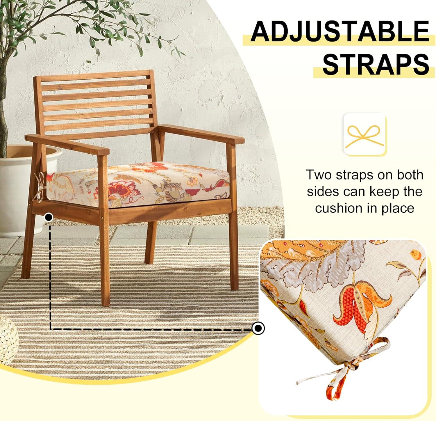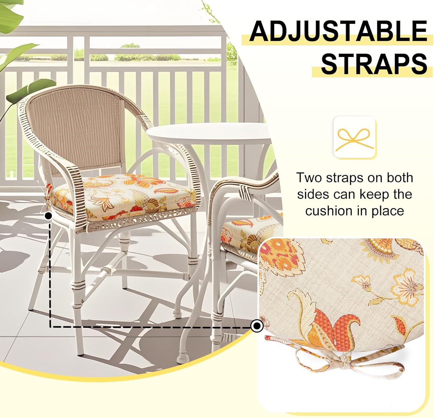 Two Adjustable Straps: There are two adjustable straps on each side of the cushions to keep them securely fastened to your outdoor chairs and prevent them from sliding easily. The exquisite strap design can provide you with convenience and practicality