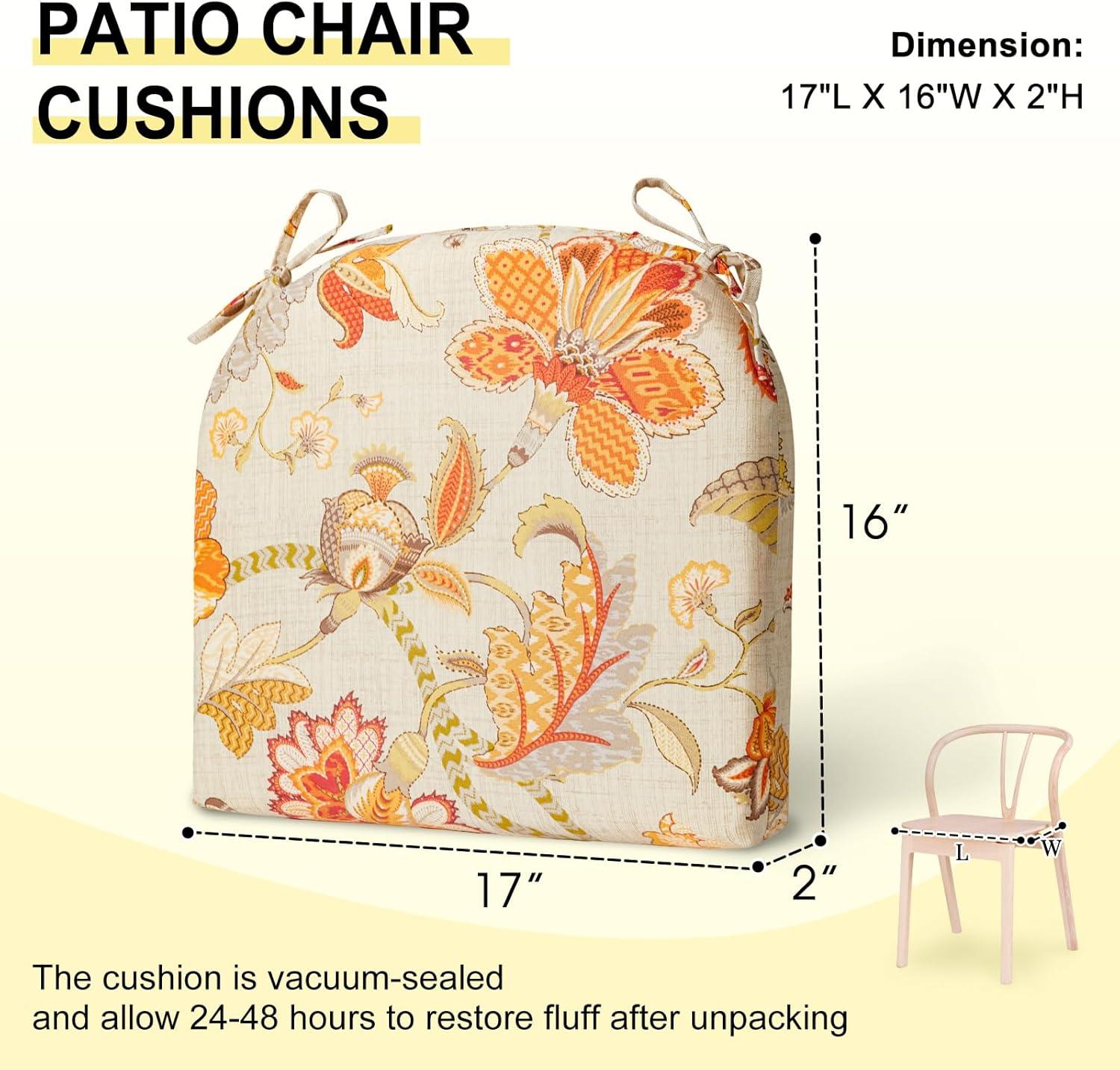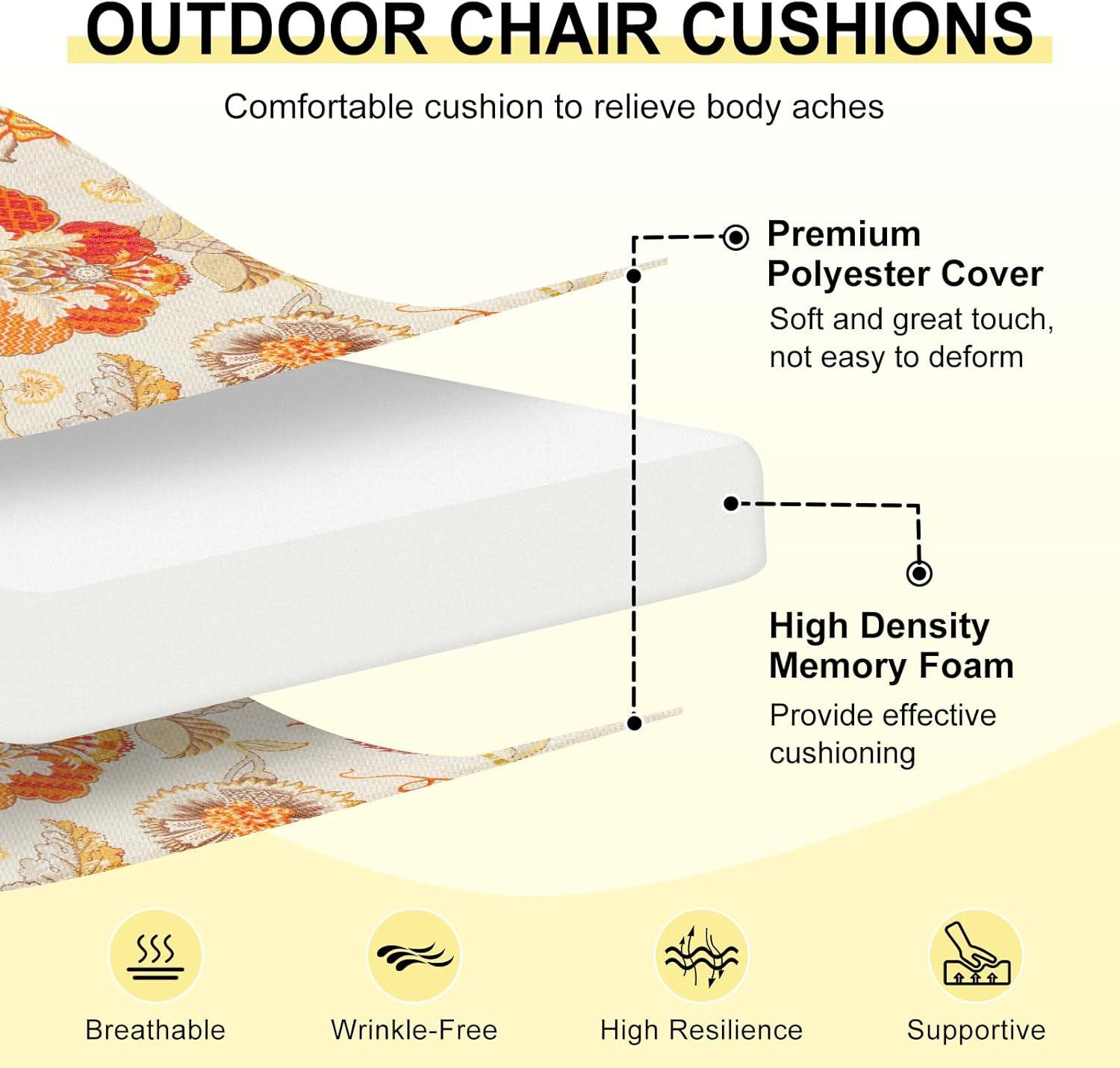 Size and Package: The size of the outdoor chair cushions is 18.5 X 16 X 3 inches and fits most standard size chairs. As the cushions are vacuum packed, you can press and tap them for a while after unpacking and they will restore fluffy within 24-48 hours