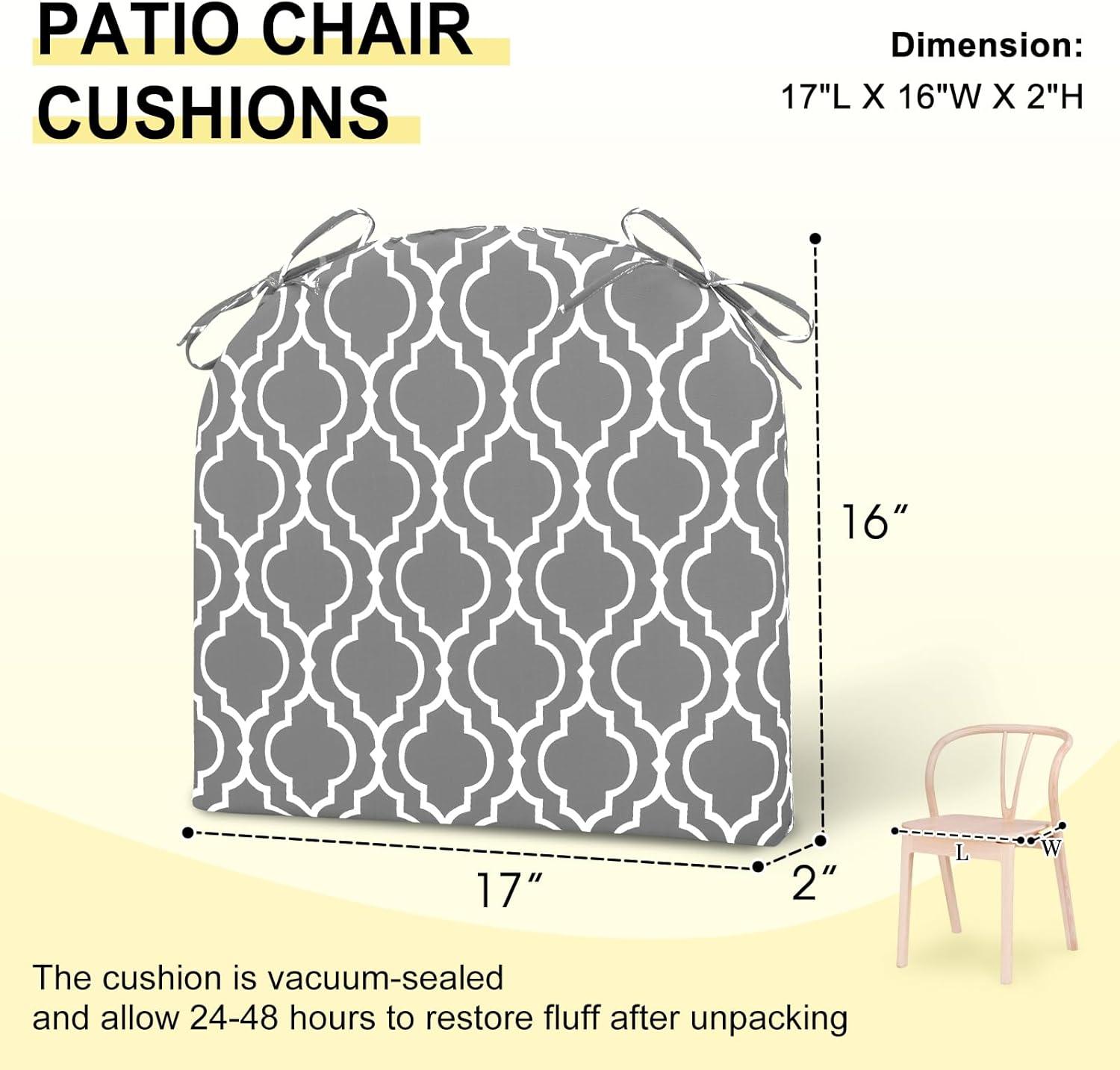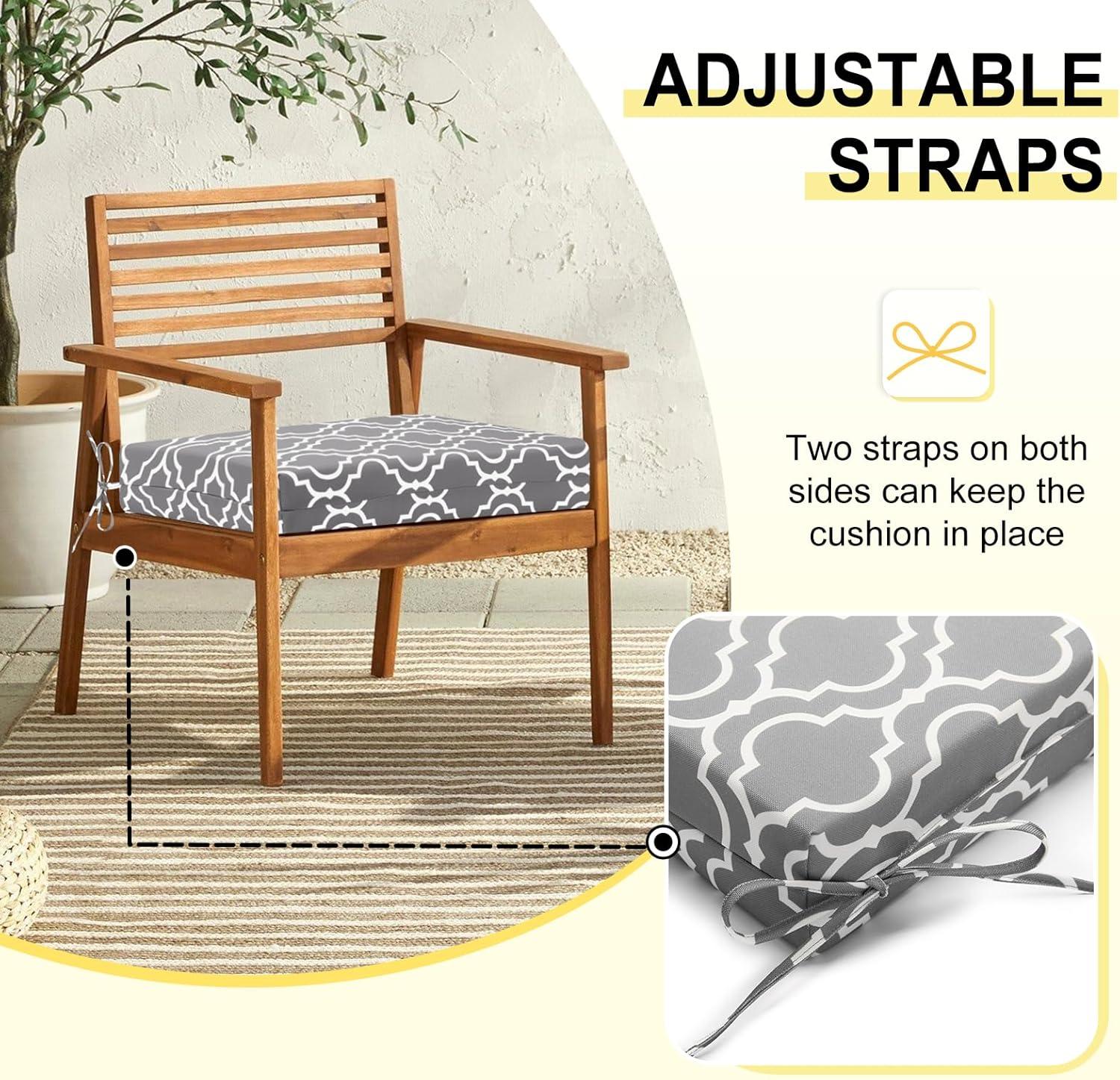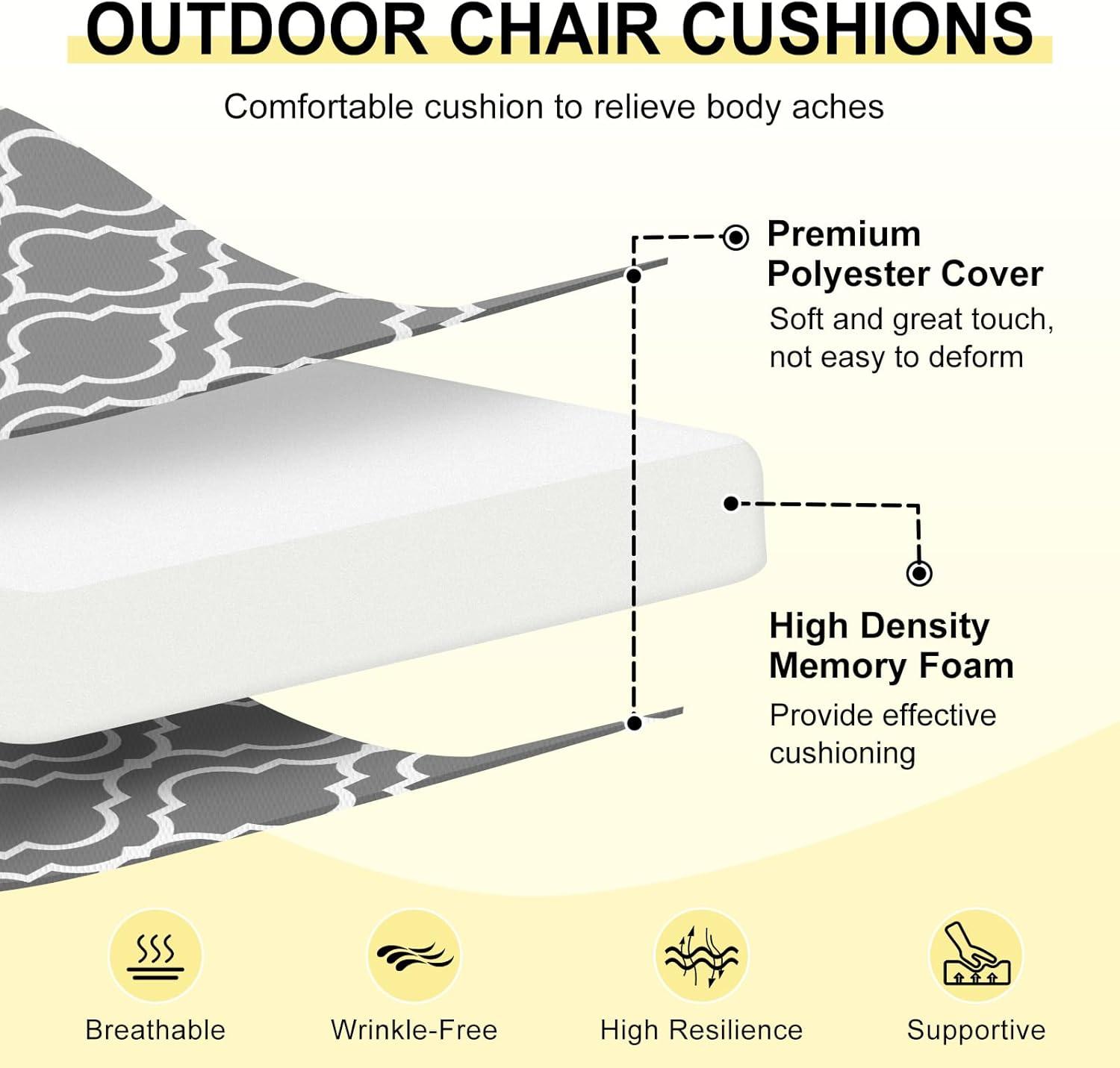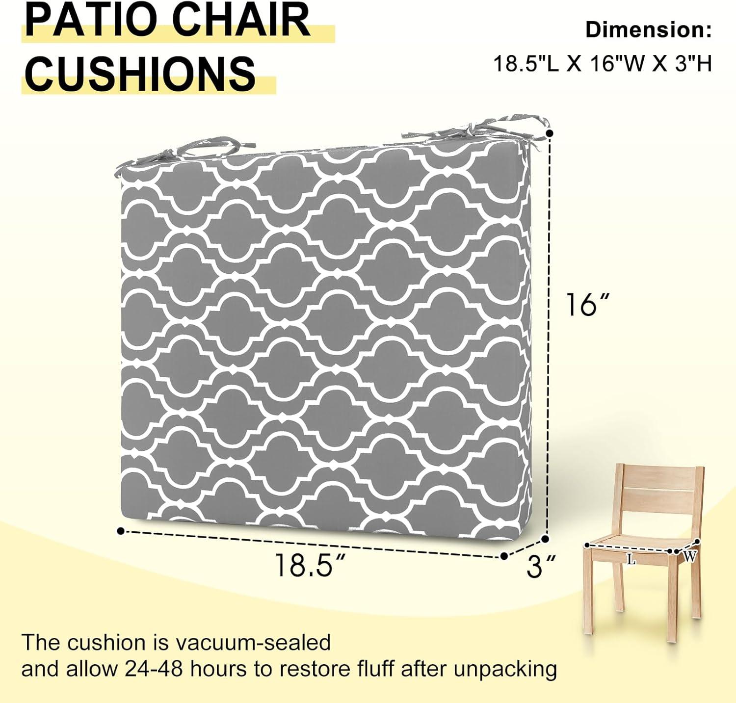 downluxe Outdoor Chair Cushions Set of 4 for Patio Furniture, Water-Resistant Square Corner Patio Chair Cushions with Ties, High Density Foam Outdoor Seat Cushion, 18.5" X 16" X 3", Black(Grey Gourd)