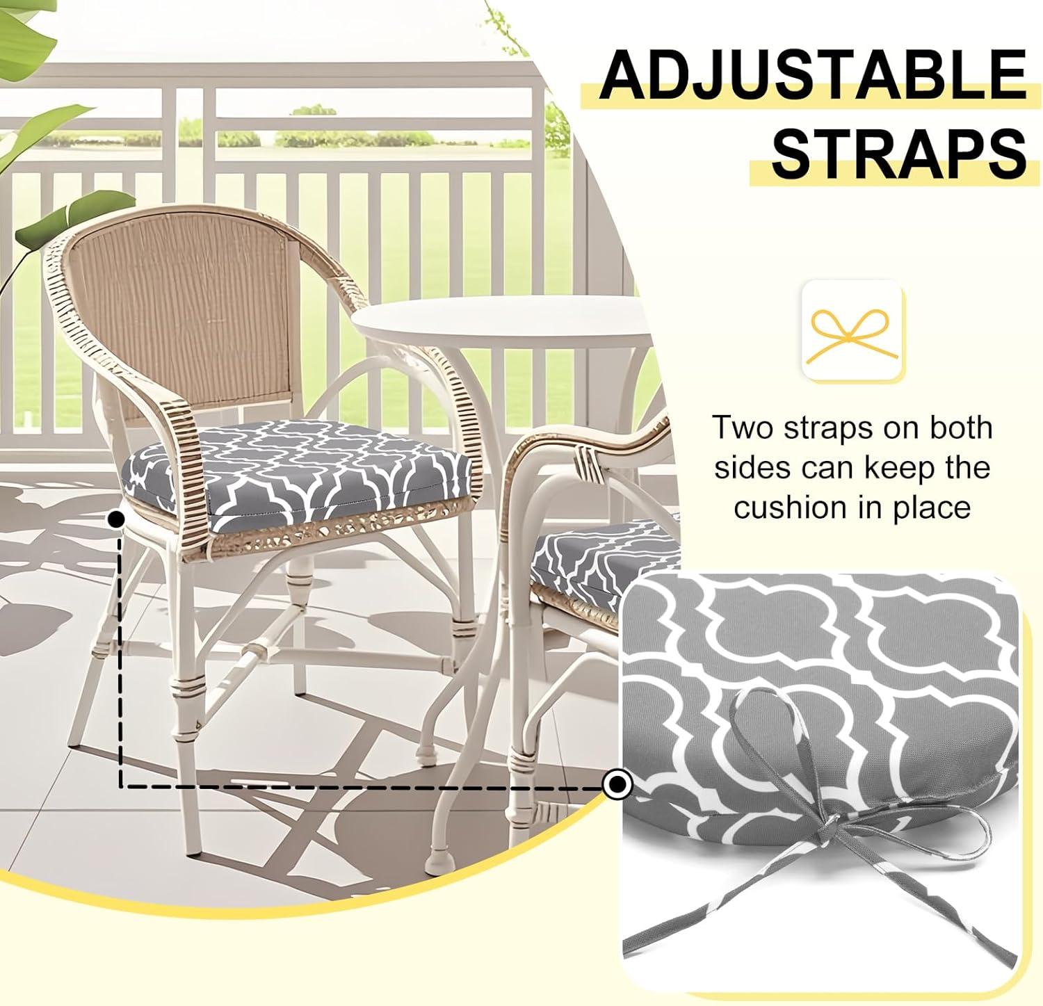 Two Adjustable Straps: There are two adjustable straps on each side of the cushions to keep them securely fastened to your outdoor chairs and prevent them from sliding easily. The exquisite strap design can provide you with convenience and practicality